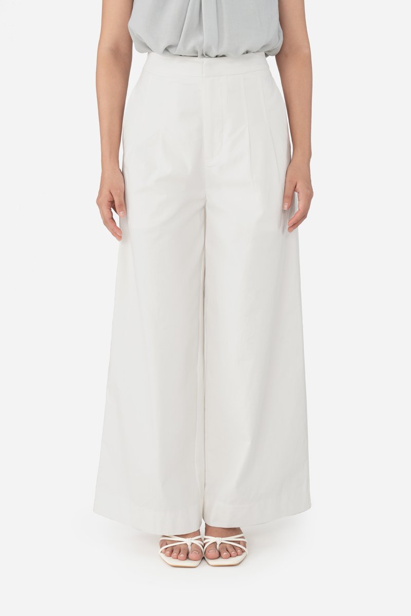 Bennet is an easy wide-leg piece designed for movement and everyday comfort. Crafted from the same breathable 100% cotton fabric as Xylon, this unlined pair feels light and comfortable for all-day wear. It features a hook and bar with zip closure, a clean waistband, and long stitched pleats that add length and subtle dimension to the silhouette. Finished with a thick stitched hem and in-seam side and back pockets, Bennet pairs effortlessly with both fitted tops and relaxed styles for a look that feels natural and put-together.