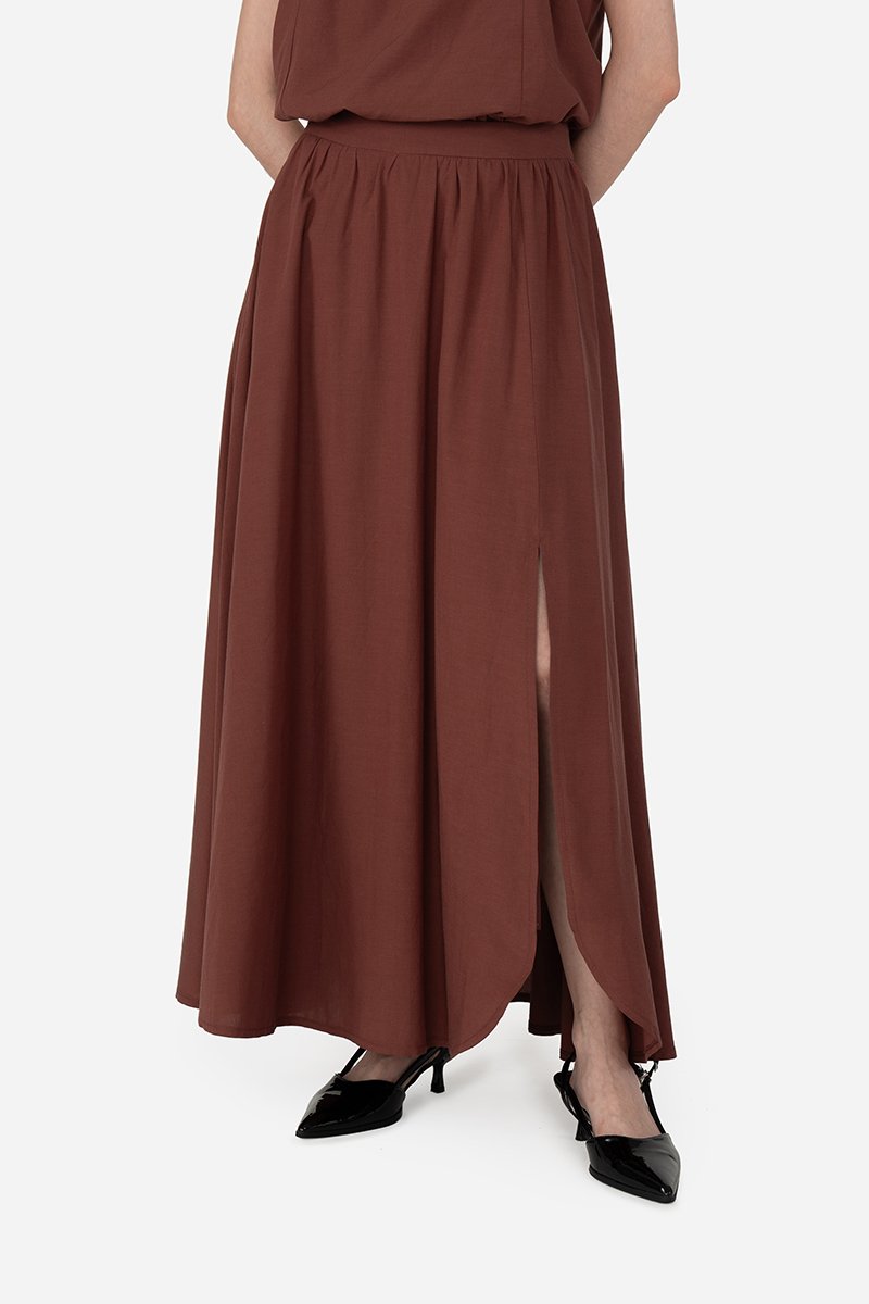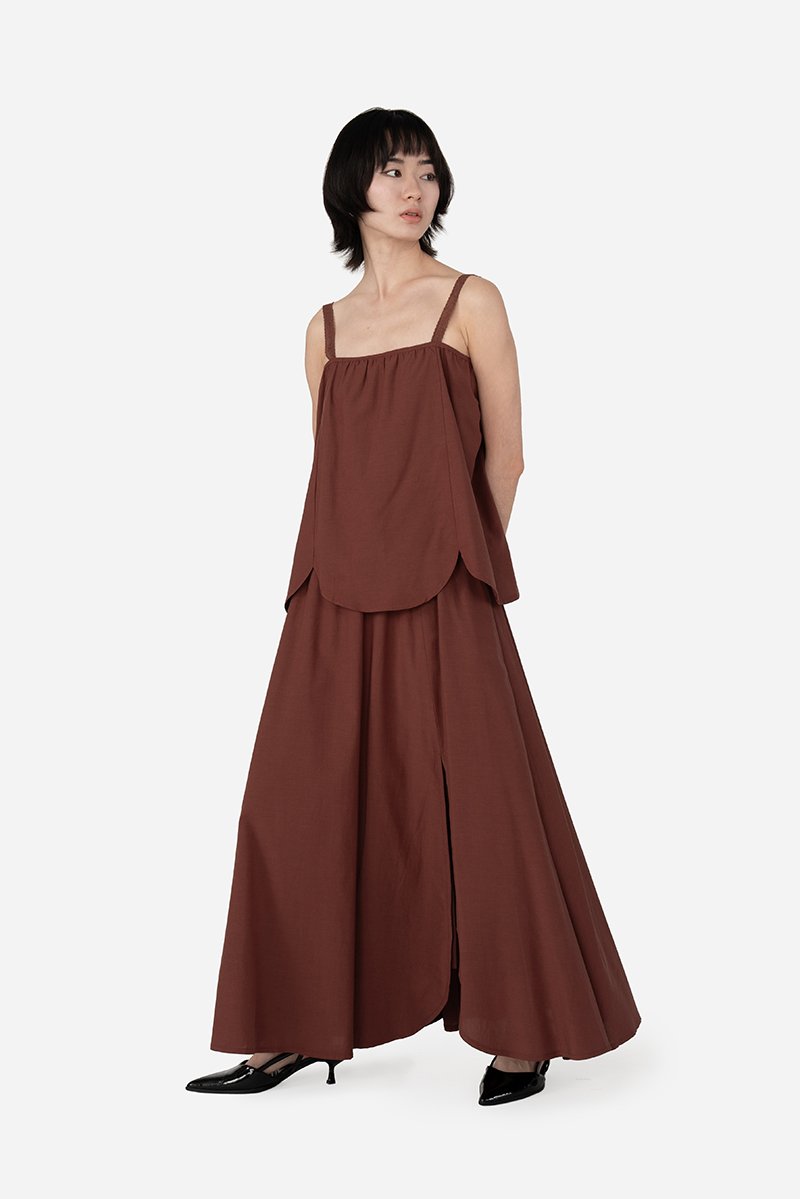 Flowy and feminine, the Dolce Skirt features a midi-length silhouette with gentle gathers and a long curved slit inspired by the shape of a ginkgo leaf. Crafted from a breathable tencel blend fabric and fully lined with pure cotton, the skirt is light, airy, and gentle on the skin. Functional inseam pockets and a concealed side zipper add practicality without compromising the elegant silhouette. Pair it with the Alba Top or Haven Cami for a coordinated co-ord look that works effortlessly for everyday wear or festive occasions.