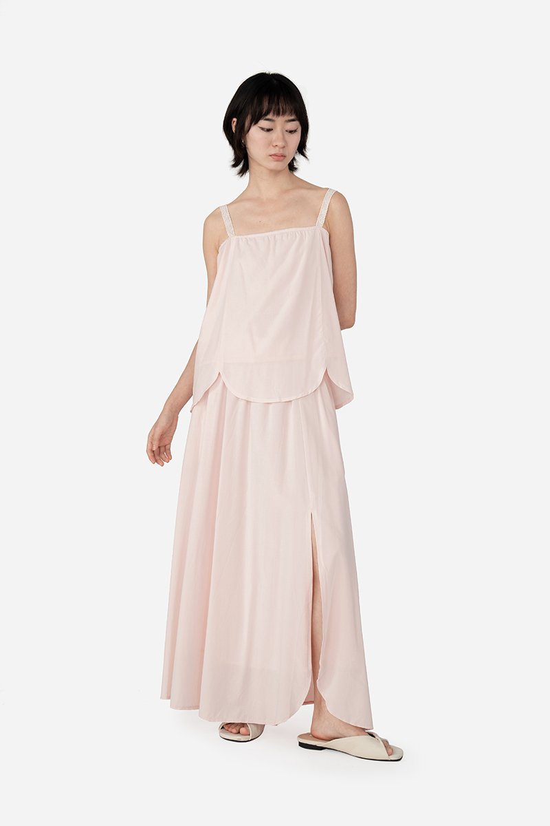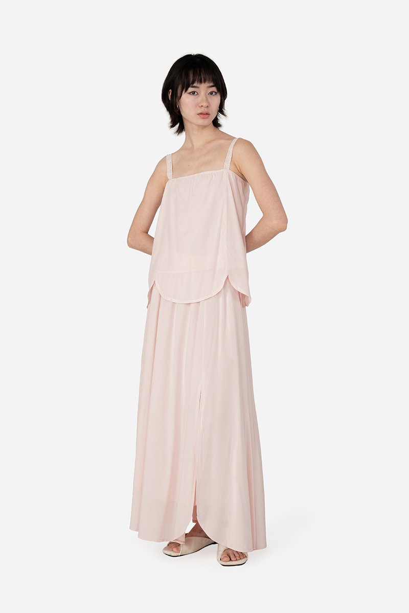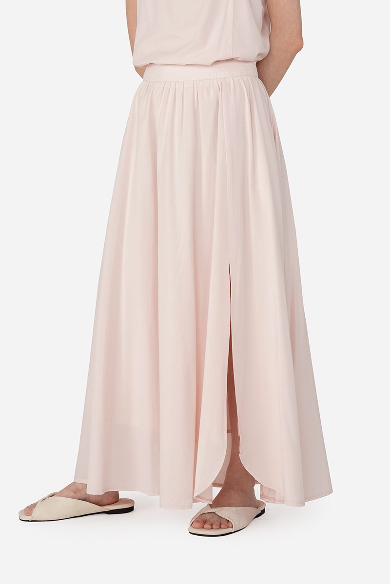 Flowy and feminine, the Dolce Skirt features a midi-length silhouette with gentle gathers and a long curved slit inspired by the shape of a ginkgo leaf. Crafted from a breathable tencel blend fabric and fully lined with pure cotton, the skirt is light, airy, and gentle on the skin. Functional inseam pockets and a concealed side zipper add practicality without compromising the elegant silhouette. Pair it with the Alba Top or Haven Cami for a coordinated co-ord look that works effortlessly for everyday wear or festive occasions.
