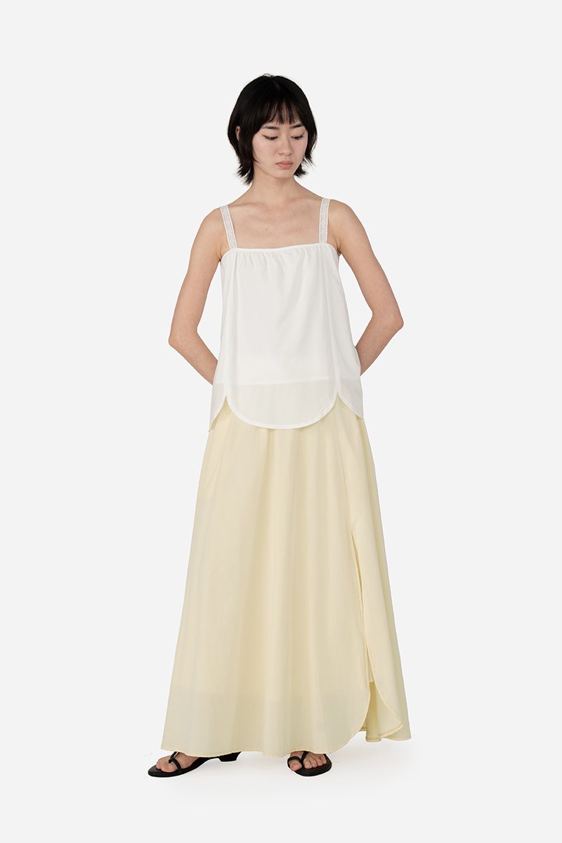 Flowy and feminine, the Dolce Skirt features a midi-length silhouette with gentle gathers and a long curved slit inspired by the shape of a ginkgo leaf. Crafted from a breathable tencel blend fabric and fully lined with pure cotton, the skirt is light, airy, and gentle on the skin. Functional inseam pockets and a concealed side zipper add practicality without compromising the elegant silhouette. Pair it with the Alba Top or Haven Cami for a coordinated co-ord look that works effortlessly for everyday wear or festive occasions.