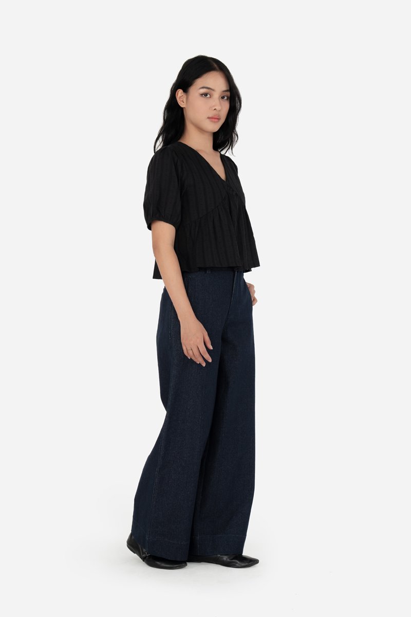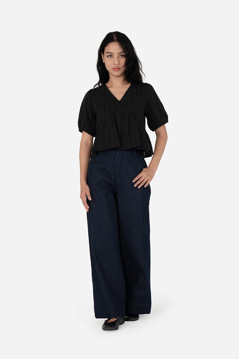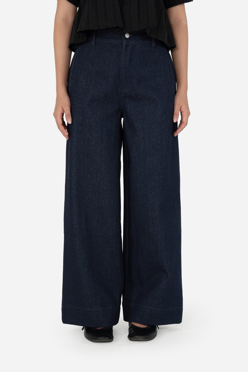 Dorcas is a modern take on the classic straight-leg jeans, designed with clean lines and a structured fit. Made from 100% cotton and unlined for breathable comfort, it features a thick, clean waistband and sleek welt pockets for a polished, minimalist look. The long straight-leg silhouette pairs effortlessly with Alana or other favourite tops, making Dorcas an easy staple for day-to-day dressing.