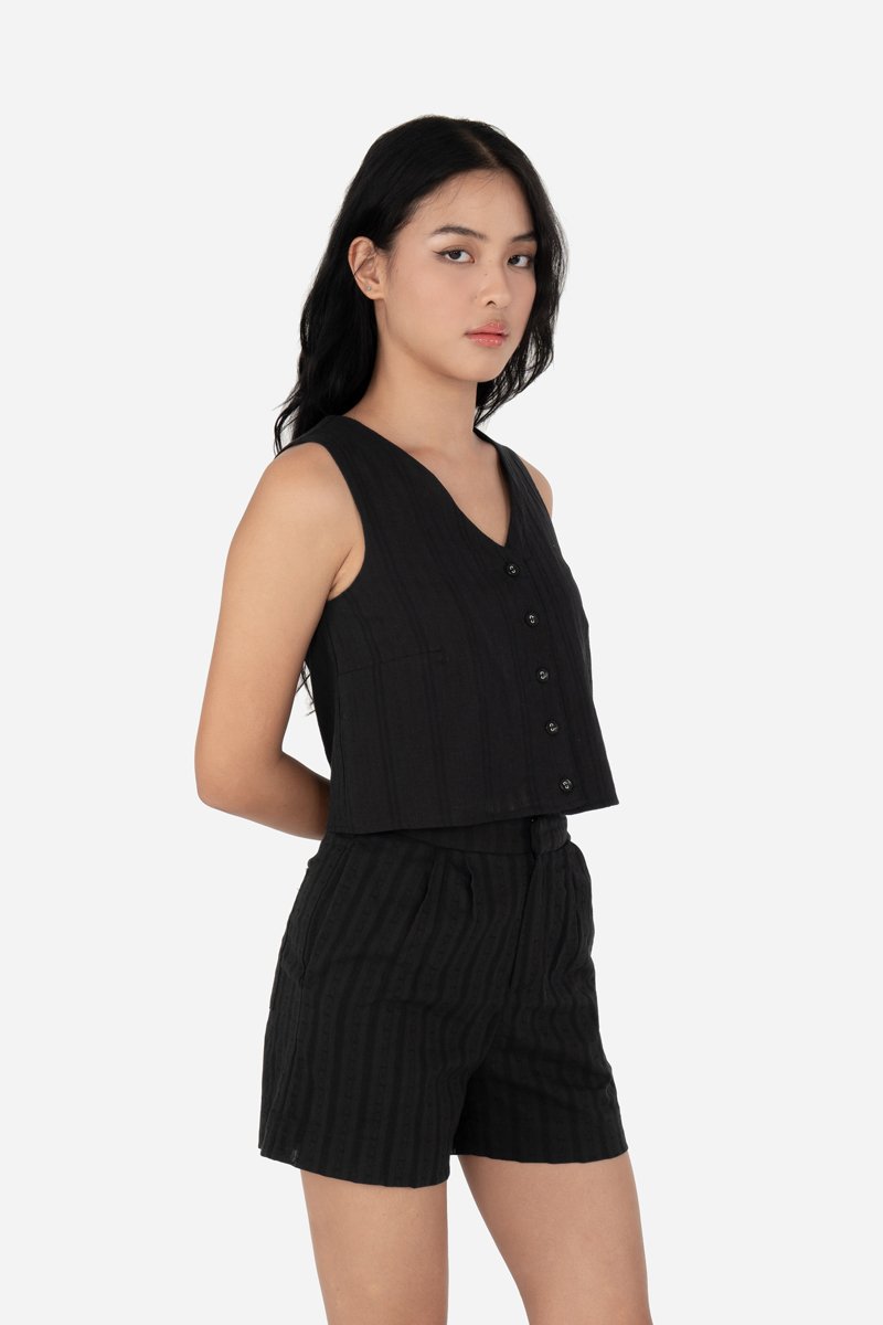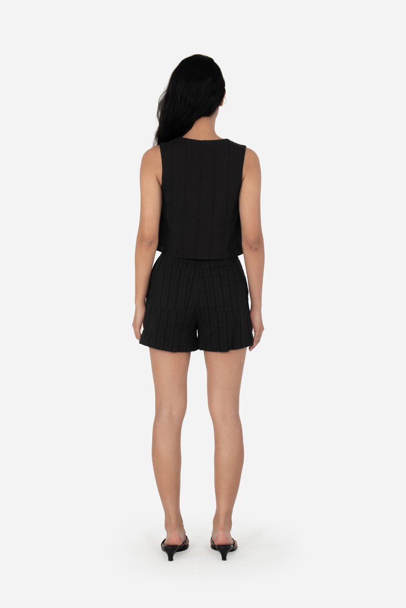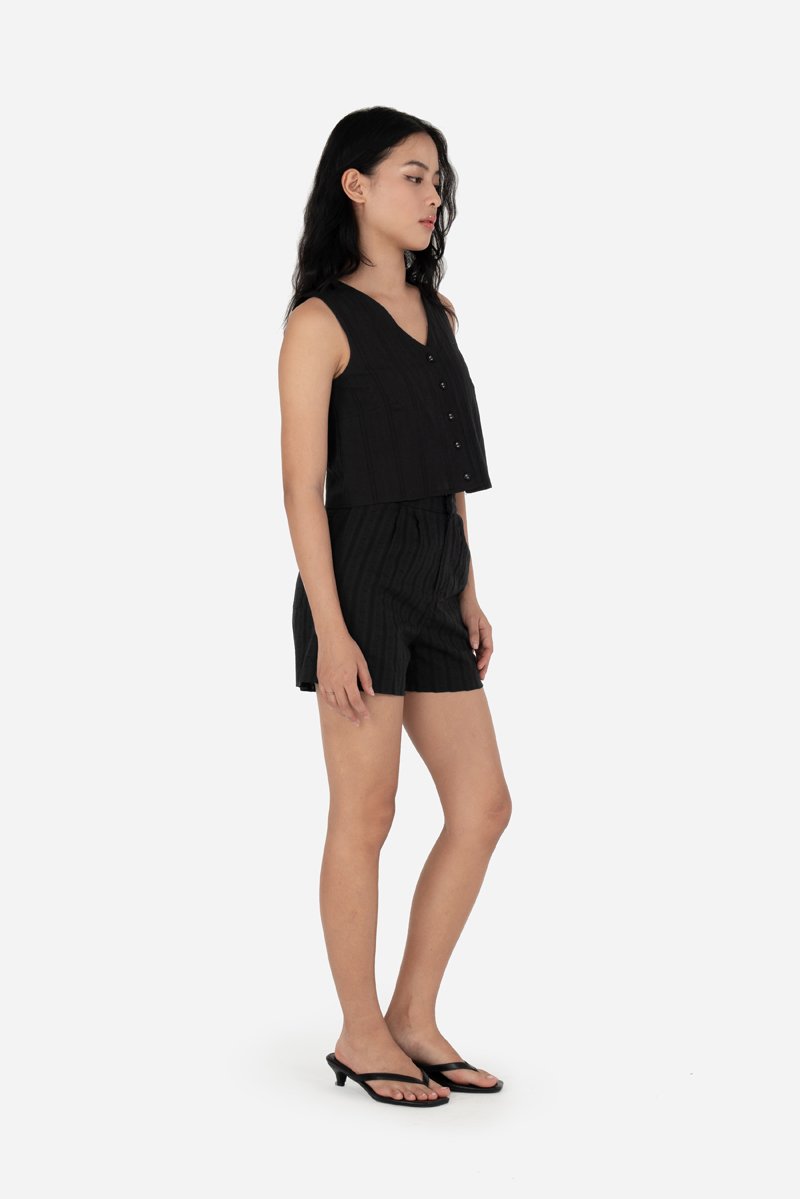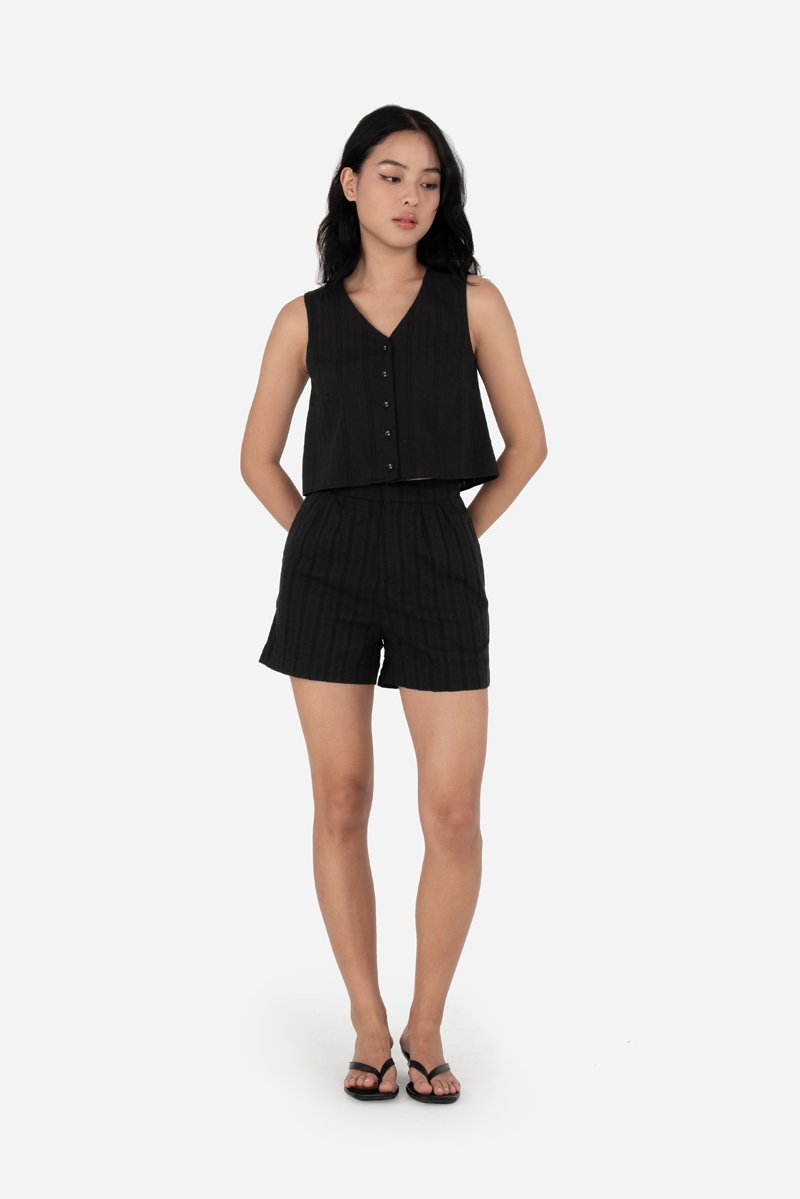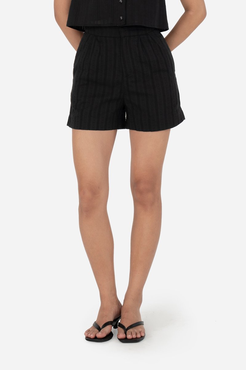 Style your favorite tops such as Zayrie, Carmen, Quileen, or Yesseca with the Fable Shorts, crafted from cotton blend fabric with a full cotton lining for breathable comfort. A thick waistband, front zip with clasp closure, and double pleat detailing provide a structured, flattering fit, while side inseam and back patch pockets keep essentials close at hand. Designed as the co-ord to the Jovi and Xena Tops, Fable allows for versatile pairing with other same-fabric pieces for endless outfit options.