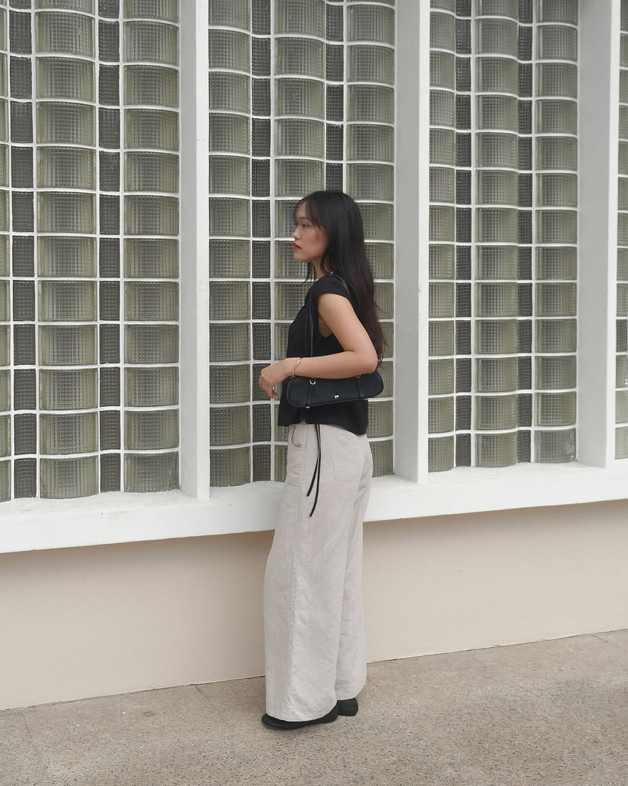 Gallo, a pair of stylish long pants featuring a classic, clean look. The design includes a simple waistband, front zip and button closure, curved front pockets and back patch pockets for practicality. These pants are crafted from the same durable cotton-linen blend as Quileen Top, with a pure cotton lining that provides comfort and breathability. The thick hem adds structure and a refined finish, making these pants a versatile addition to any wardrobe. Made as the co-ord bottom to the Tate Top, Gallo can be paired with our assortment of same fabric tops for fuss-free, quick casual or semi-casual wear fits.