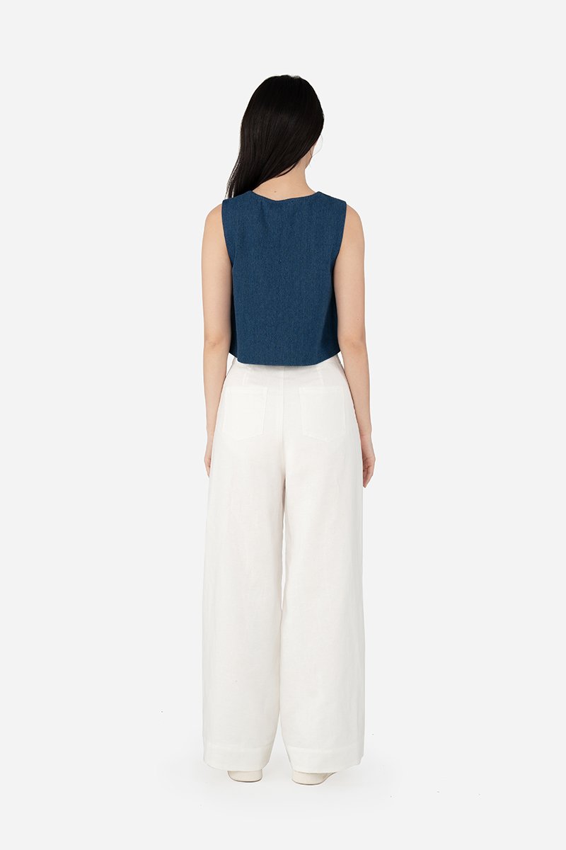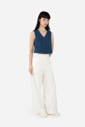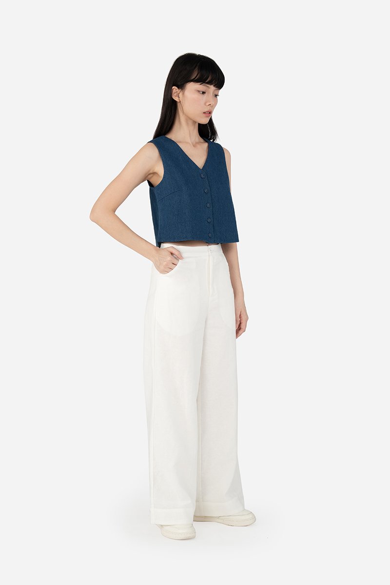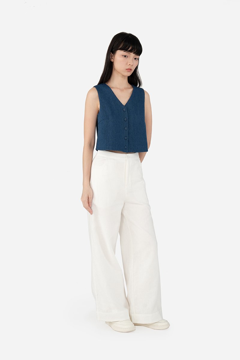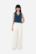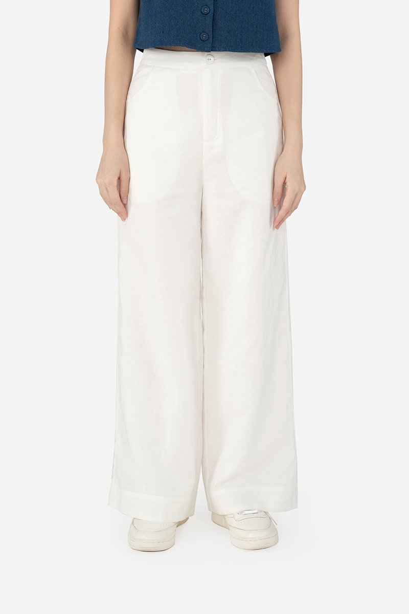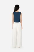 Gallo, a pair of stylish long pants featuring a classic, clean look. The design includes a simple waistband, front zip and button closure, curved front pockets and back patch pockets for practicality. These pants are crafted from the same durable cotton-linen blend as Quileen Top, with a pure cotton lining that provides comfort and breathability. The thick hem adds structure and a refined finish, making these pants a versatile addition to any wardrobe. Made as the co-ord bottom to the Tate Top, Gallo can be paired with our assortment of same fabric tops for fuss-free, quick casual or semi-casual wear fits.