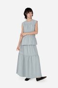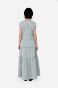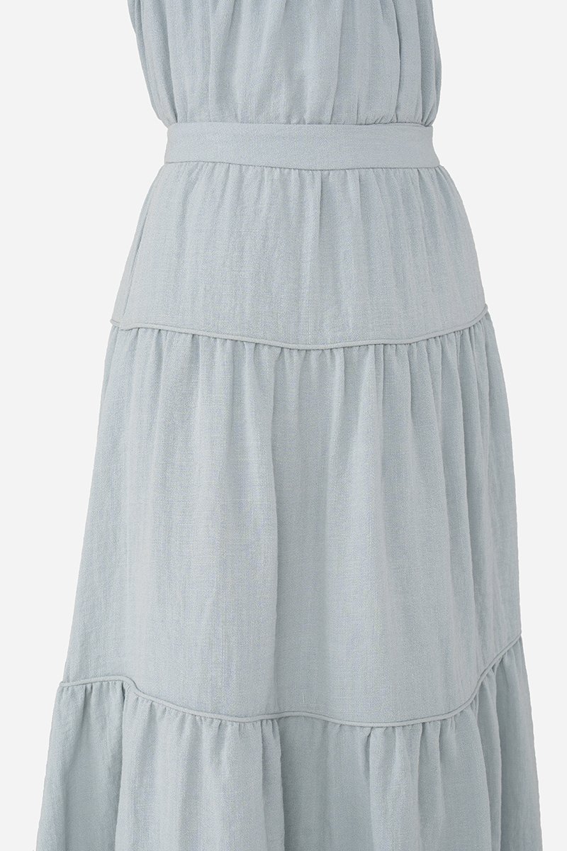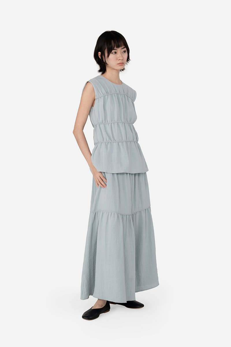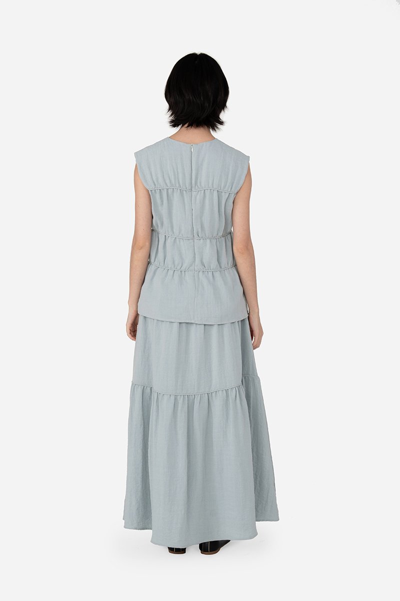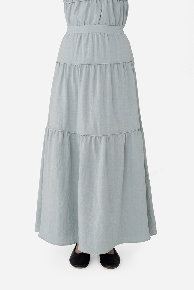 Add a statement layer to your outfit rotation with the Imara Skirt, a multi-tiered maxi designed to move gracefully with every step. It features a flowing silhouette with horizontal piping detailing for subtle definition and texture, and a side concealed zipper for a clean finish. Crafted from a soft rayon blend fabric and fully lined with pure cotton, it pairs beautifully with the Dovie, Estel, or Celie for a coordinated co-ord, or can be styled with your favorite separates for versatile, everyday looks.
