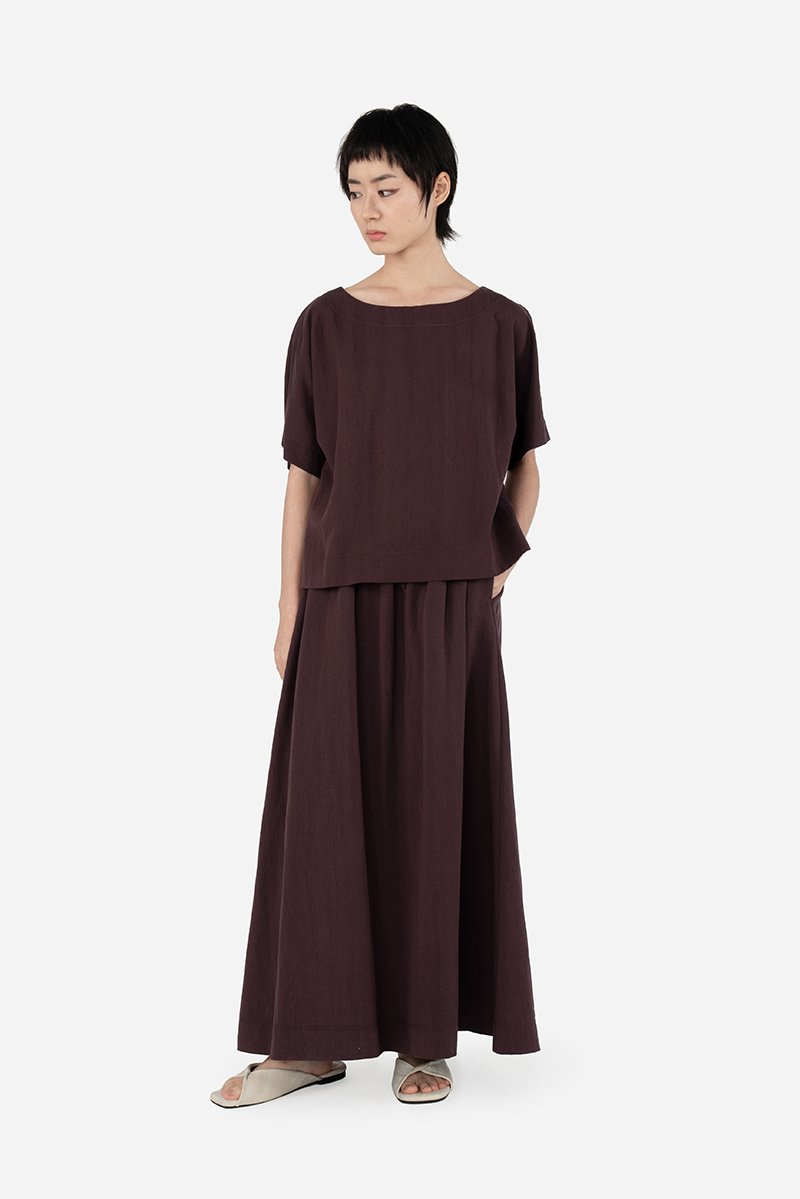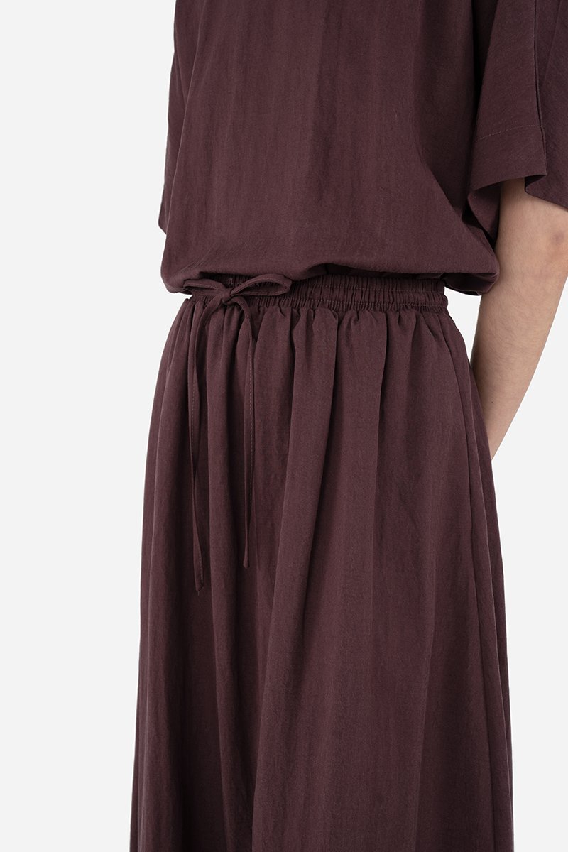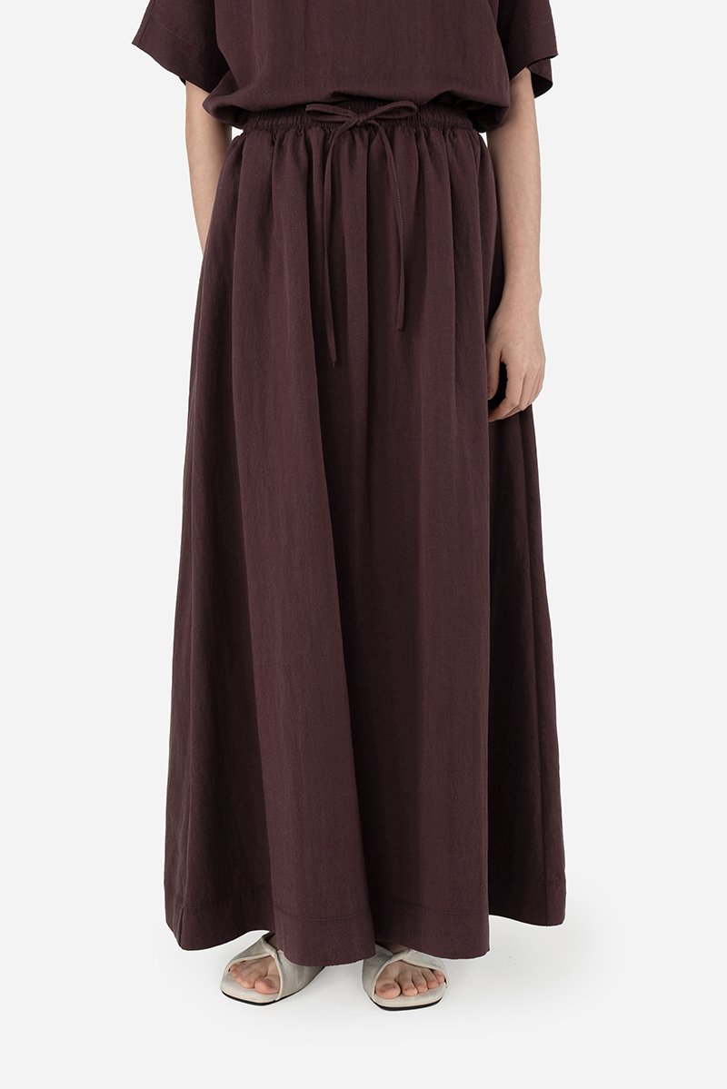 A minimalist essential, Luca blends comfort with understated style. Made in a soft, drapey rayon blend fabric, it features an elastic drawstring waistband, inseam pockets, a thick-stitched hem, and an A-line silhouette for a relaxed yet put-together shape. Styled with the Koru Top, it forms a clean co-ord perfect for everyday wear.
