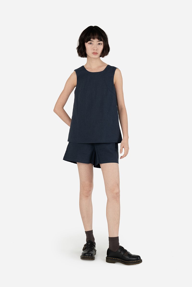 A classic pair of shorts without any frills. Fully lined with a pure cotton lining, Qayser is the designated bottom for the Vanisa Top and is crafted out of the same cotton blend fabric. Fuss-free, it has a plain waistband, slashed pockets and a concealed zip at the back.