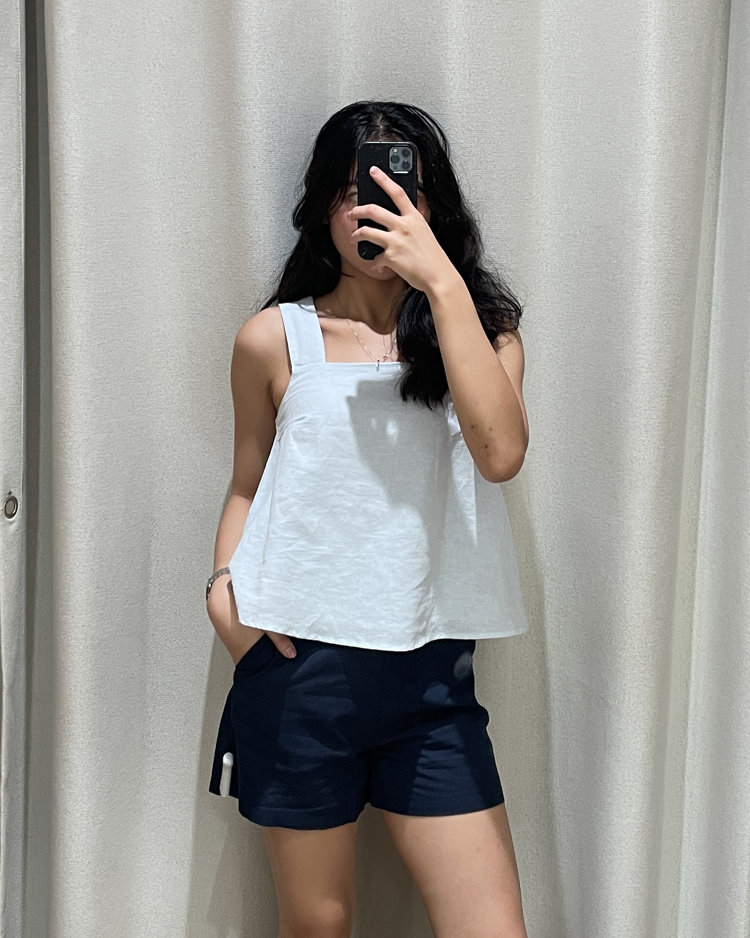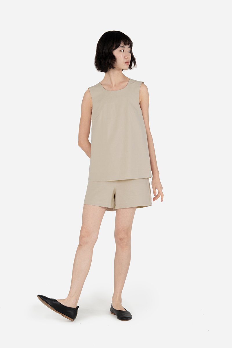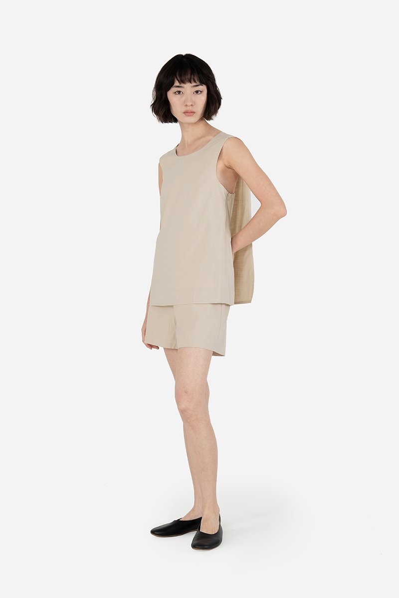 A classic pair of shorts without any frills. Fully lined with a pure cotton lining, Qayser is the designated bottom for the Vanisa Top and is crafted out of the same cotton blend fabric. Fuss-free, it has a plain waistband, slashed pockets and a concealed zip at the back.