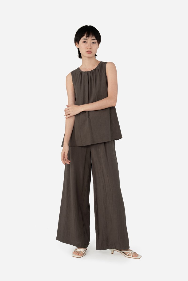 Subtle structure meets relaxed style in these long trousers with thoughtful detailing. Crafted from a breathable rayon blend and fully lined in pure cotton, Ulric features a button and zip fly front detailed with a drawstring tie, darted pleats, and functional pockets for practicality. Designed with gentle shaping for a flattering fit, these pants pair beautifully with Delara, or can be styled with your favorite tops for a clean, versatile look.