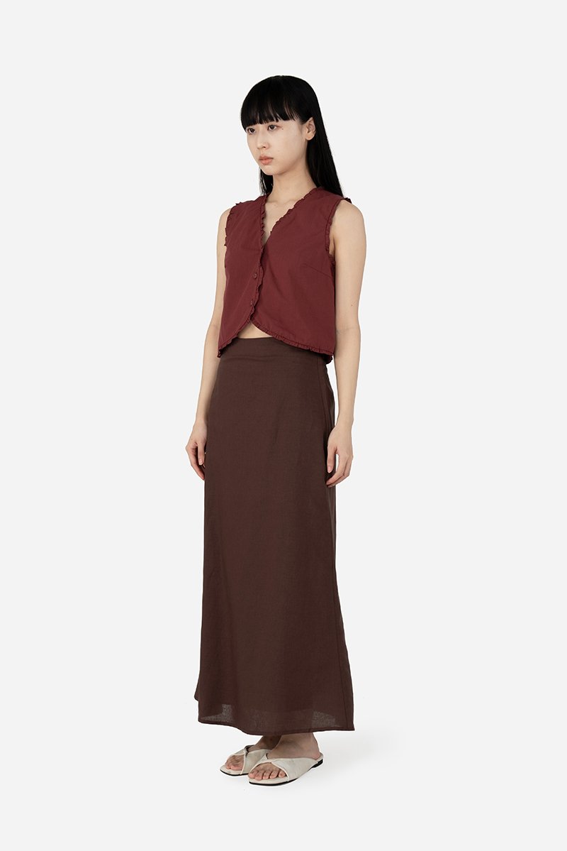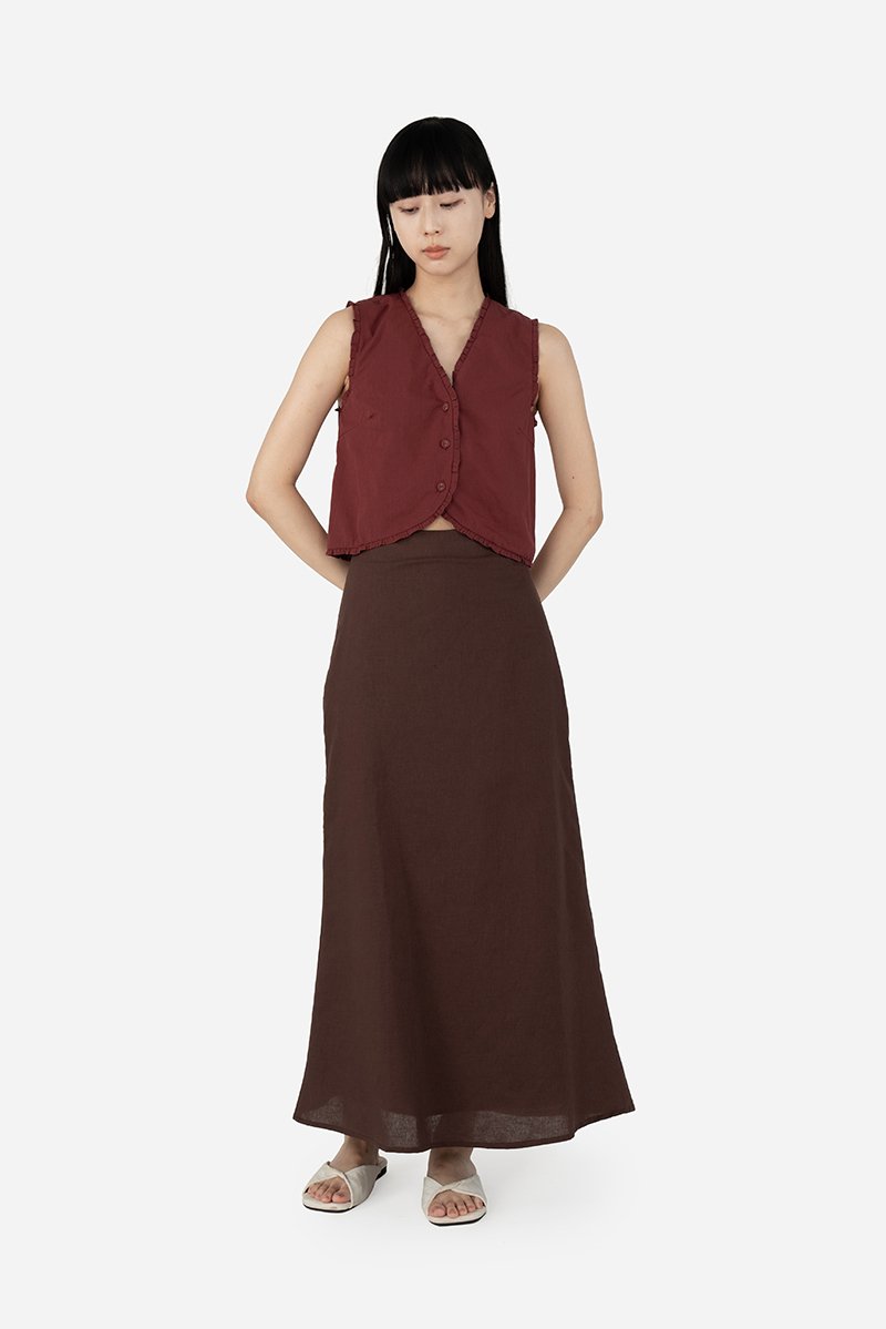 Not a fan of pants? Take a feminine turn with the Verhana Skirt. With a pure cotton, full lining, this maxi is thoughtfully designed in a mermaid silhouette that accentuates your curves just right and completed with a side concealed zip for a clean finish. Crafted from our popular cotton-linen fabric – Quileen, Yesseca, Zayrie, just to name some, you’ll never run out of polished co-ord looks to start your day right.