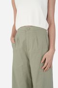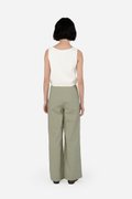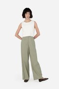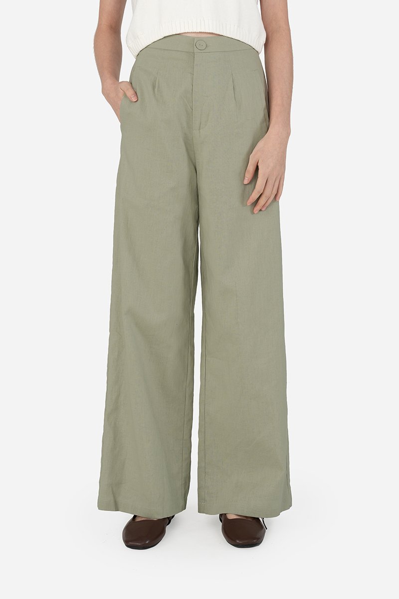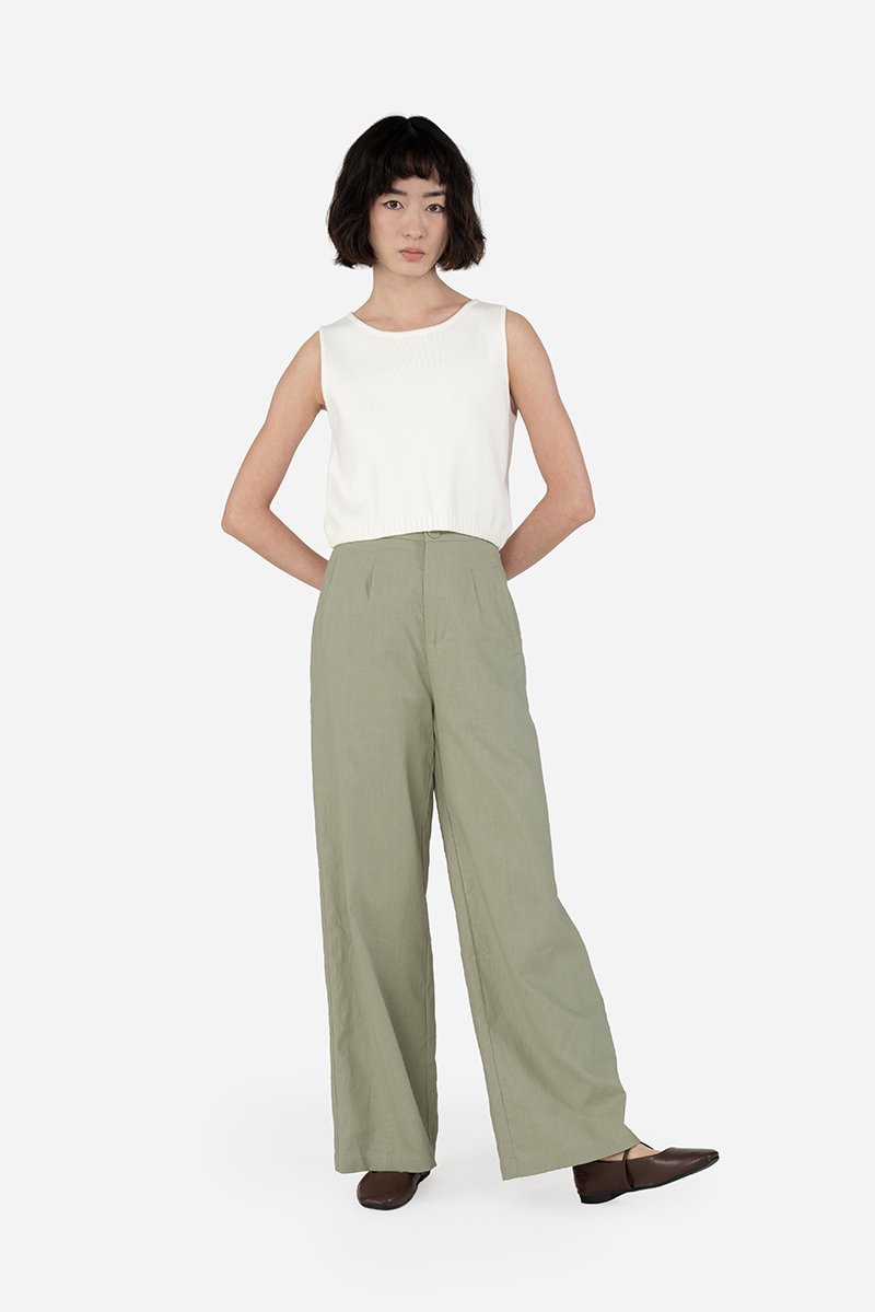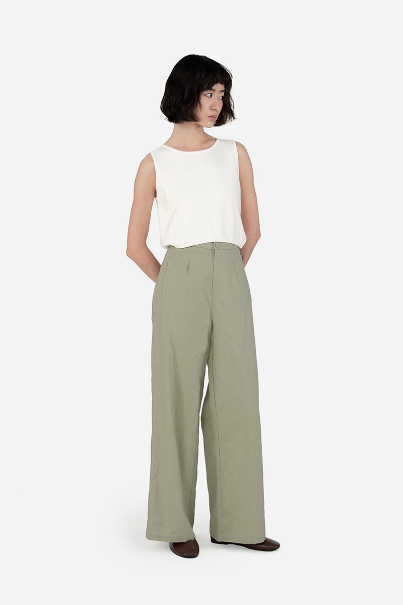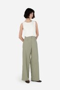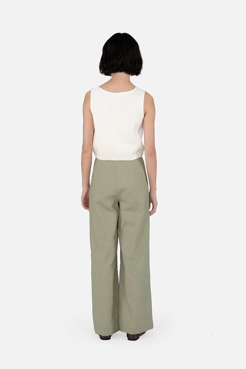 Xyan Pants, a bottom made to deliver a matching fabric set with the Arleen Cami or Zareen Top. Put together with a cotton-linen fabric and pure cotton lining, this standard length pair has a straight-legged silhouette and a front zip and fabric button closure. It features a clean waistband, mini pleat detailing and welt pockets at the front.