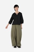 Bring effortless style to your wardrobe with Xylon, a baggy barrel pant designed for comfort and style. Crafted from the same 100% cotton material as Zediah, these long pants feature an extra stitched panel, thick belt loops with button-zip closure, darted leg openings, and functional pockets for subtle shaping and practicality. Xylon pairs perfectly with Quella, or can be styled with your favorite tops, for a versatile, everyday look.