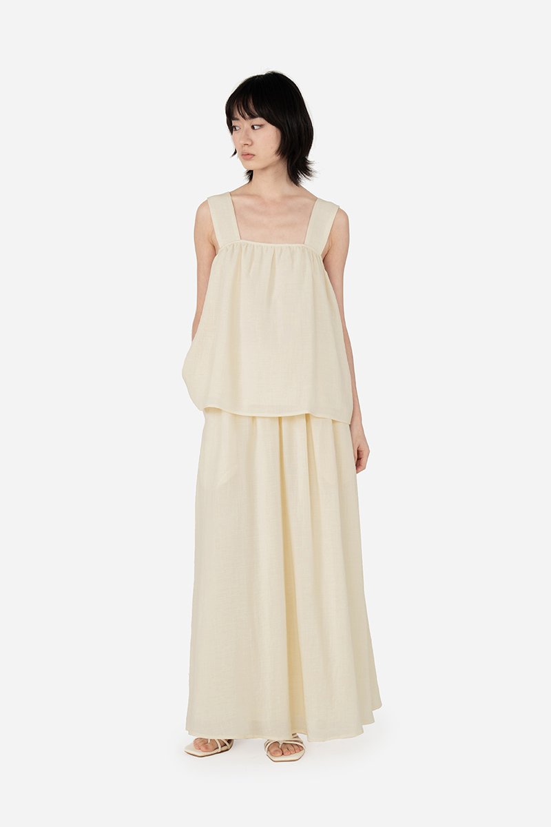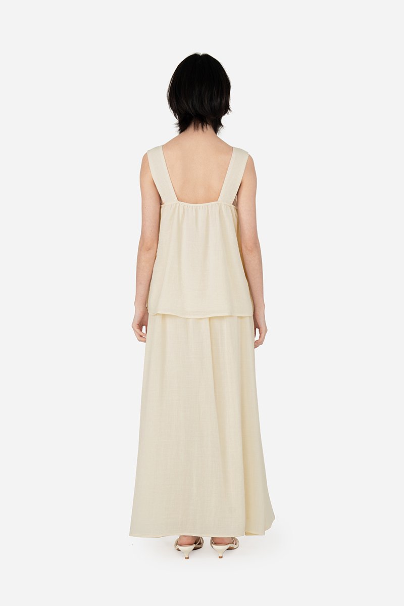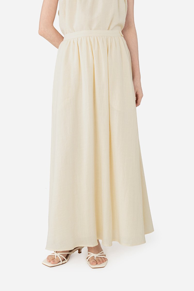 Effortless and easy to wear, the Zennin Skirt features an A-line silhouette with gathered detailing at the waist, finished with unique side button detailing and a concealed side zipper. Crafted in a soft rayon blend fabric and fully lined with pure cotton, styled with the Yonen Top, it forms a clean co-ord that transitions easily from everyday wear to more dressed-up occasions.