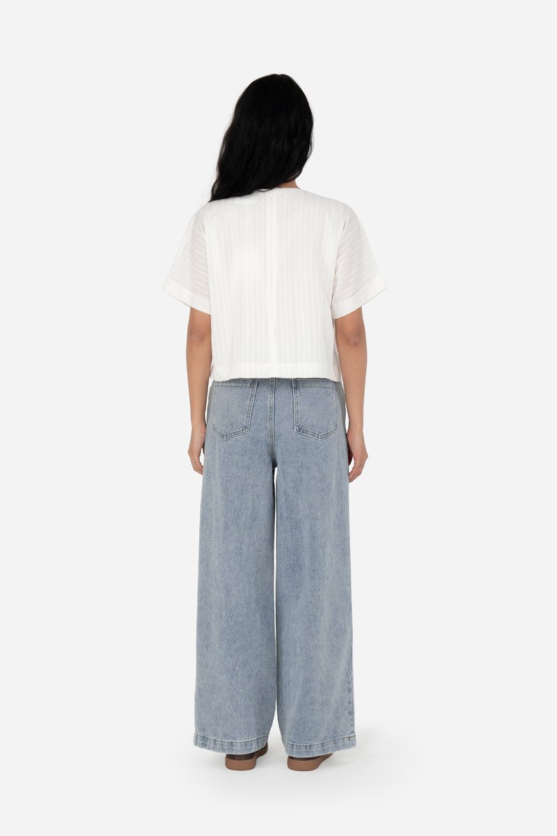 Balancing structure with everyday ease, Zenon is a versatile piece made for effortless styling. Made from structured cotton denim that holds its shape while remaining comfortable for all-day wear, this straight-cut pair features a button closure and a classic straight-leg silhouette. Distinctive folded pocket detailing adds a subtle design touch, while functional pockets and a streamlined fit keep it practical. Style Zenon with both fitted tops and relaxed silhouettes for a look that feels considered yet easy.