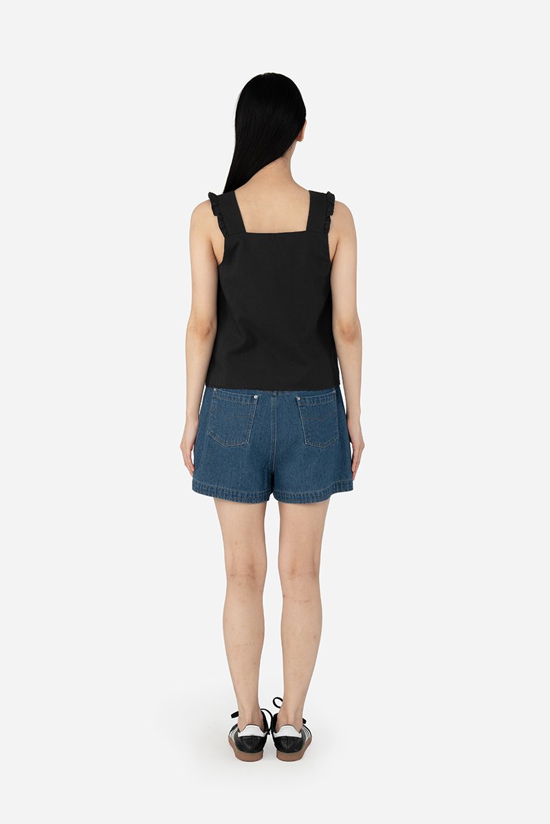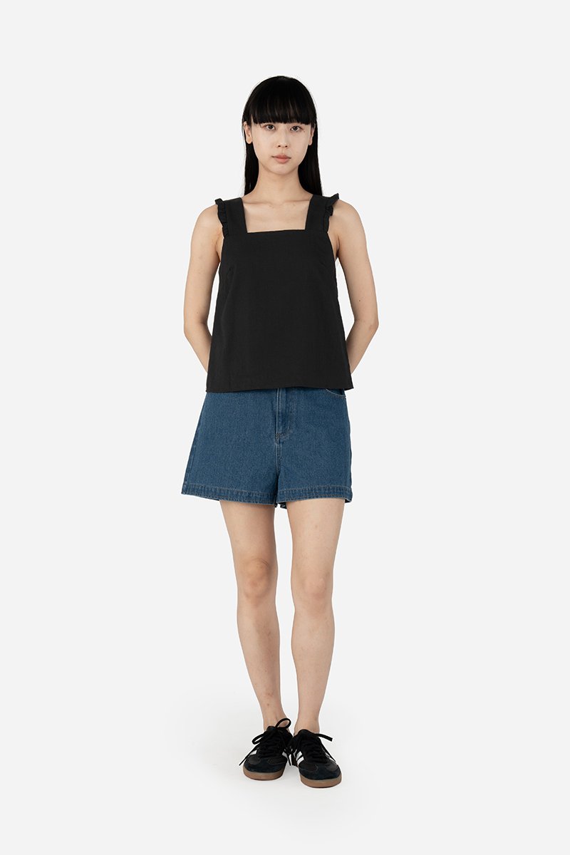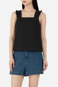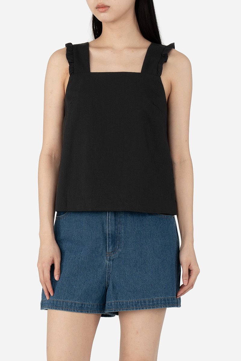 Crafted from rayon blend, the Jenma Top drapes well and feels soft to the touch. It comes lined and features a basic square neckline and thick straps adorned with slight ruffles for a feminine touch. With its versatility, it can be paired with any bottoms tucked in for a finished look, or tucked out for a soft look.