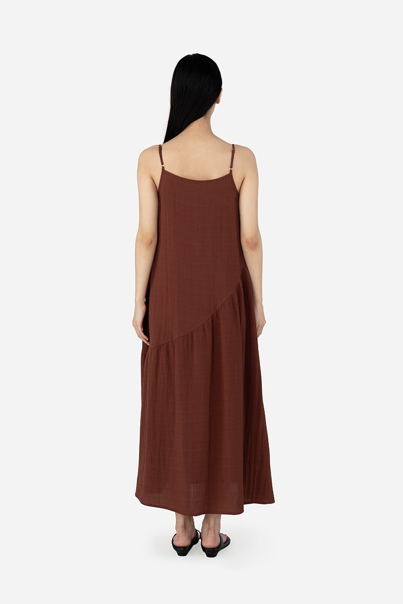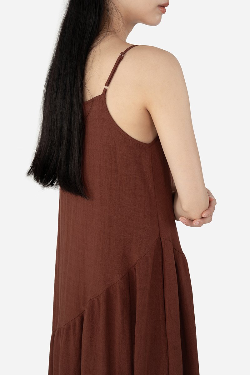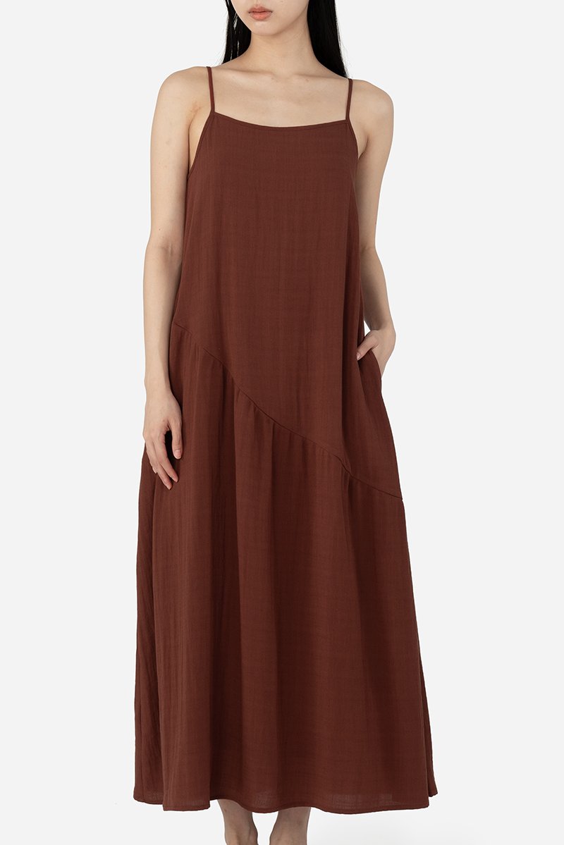 Designed with an effortless silhouette in mind, the Everlee Dress is a cami-style maxi featuring a softly slanted gathered panel that adds subtle movement and dimension. Adjustable straps lend easy wearability, while inseam pockets and a concealed side zip offer everyday functionality. Crafted from a fluid tencel blend fabric and fully lined with pure cotton, Everlee delivers breathable comfort with a refined drape, making it an easy choice from casual days to elevated evenings.