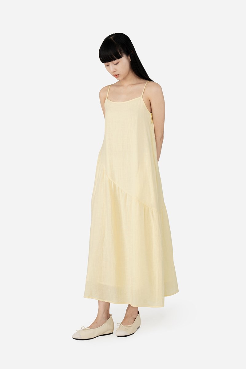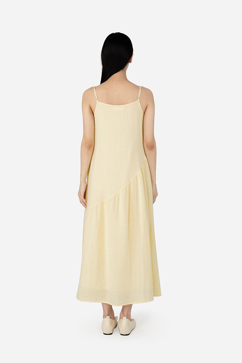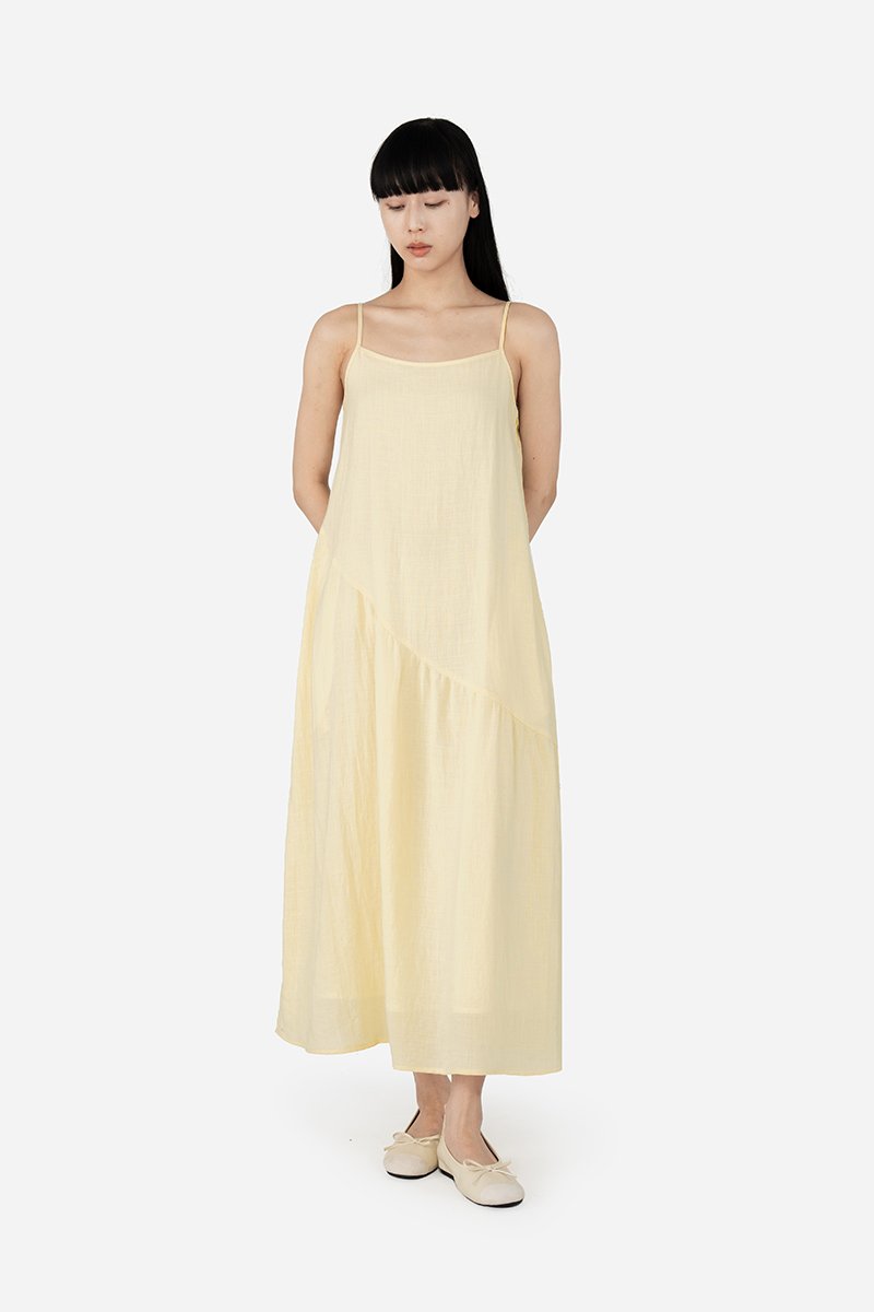 Designed with an effortless silhouette in mind, the Everlee Dress is a cami-style maxi featuring a softly slanted gathered panel that adds subtle movement and dimension. Adjustable straps lend easy wearability, while inseam pockets and a concealed side zip offer everyday functionality. Crafted from a fluid tencel blend fabric and fully lined with pure cotton, Everlee delivers breathable comfort with a refined drape, making it an easy choice from casual days to elevated evenings.