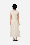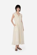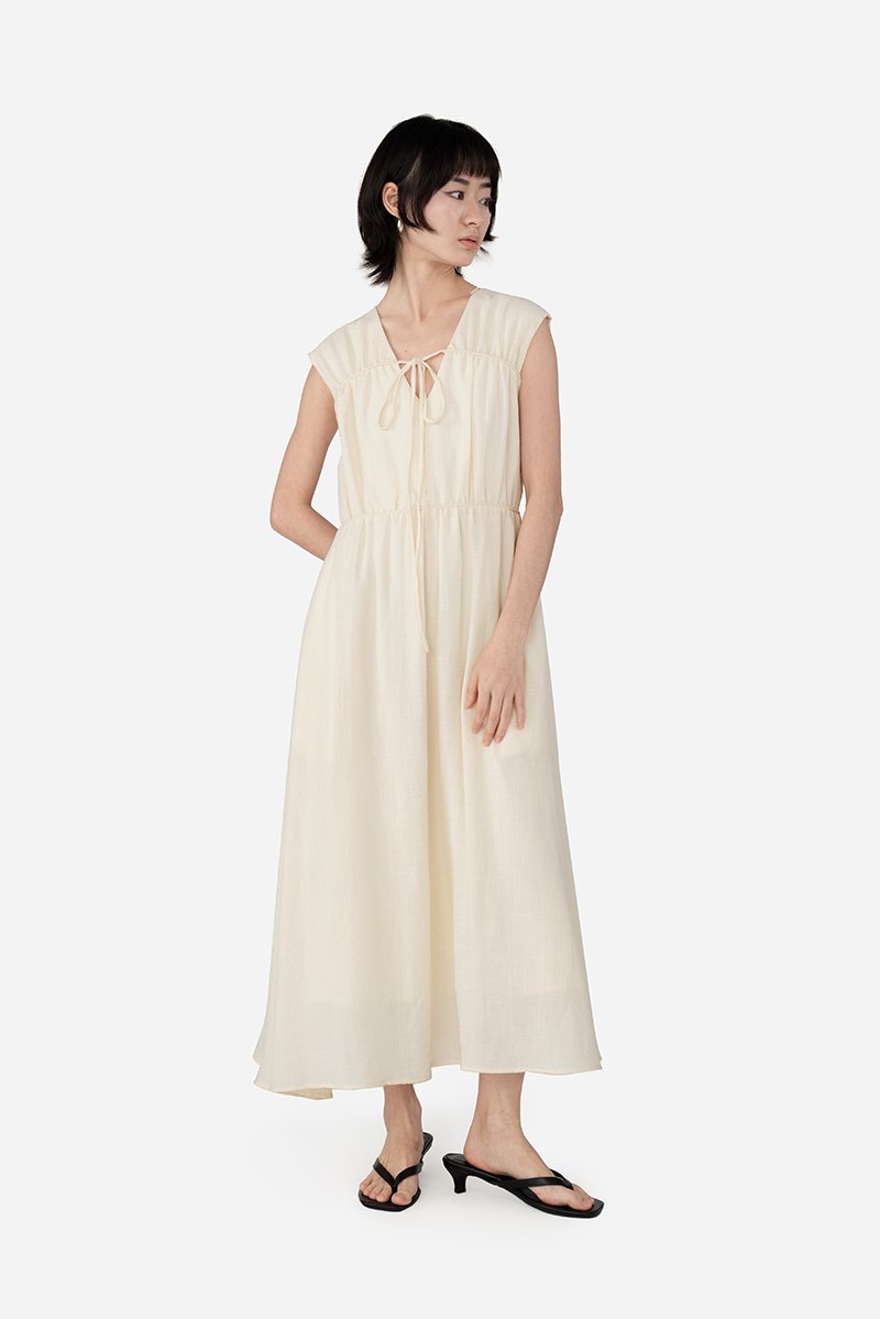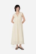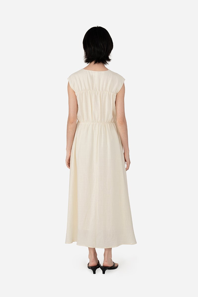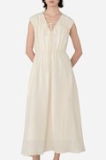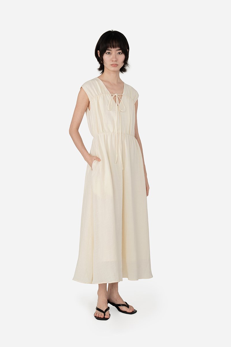 Featuring a V-neckline with horizontal piping and tie-string detailing, complemented by subtle gathered accents for a flattering silhouette, the Hera Dress is crafted from a soft rayon blend fabric and fully lined with pure cotton, keeping you cool and comfortable all day. With a side concealed zipper and two inseam pockets, it’s ready to carry you from daytime errands to celebratory gatherings with ease.