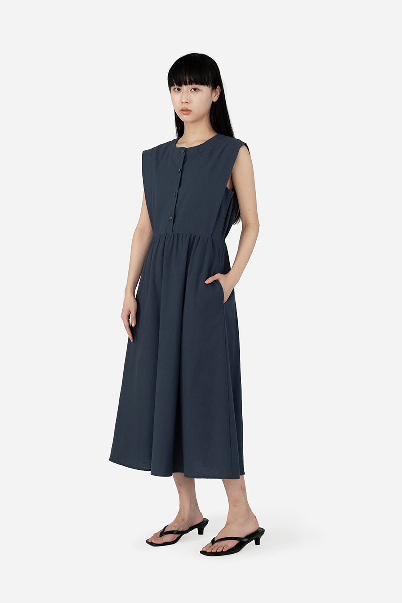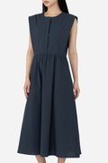 Crafted from the same cotton-linen fabric as our Hectov Pants, the Jettson Dress features a sleeveless, slightly structured shoulder design inspired by the classic muscle-top silhouette. A gathered waistline creates a relaxed, flattering fit, while inseam pockets, a back concealed zipper, and functional buttons down the front add practical details. Fully lined with pure cotton for breathable comfort, Jettson can be worn with heels or sandals for an effortlessly polished look.