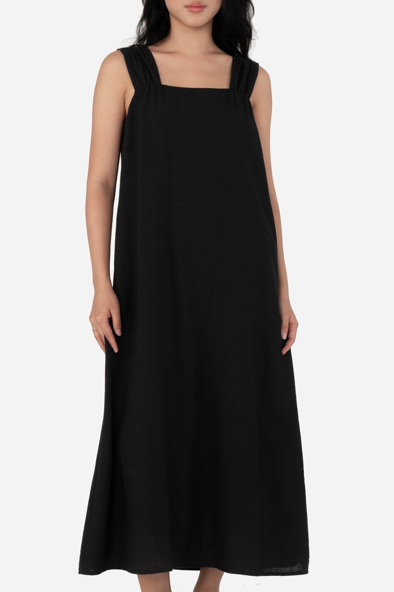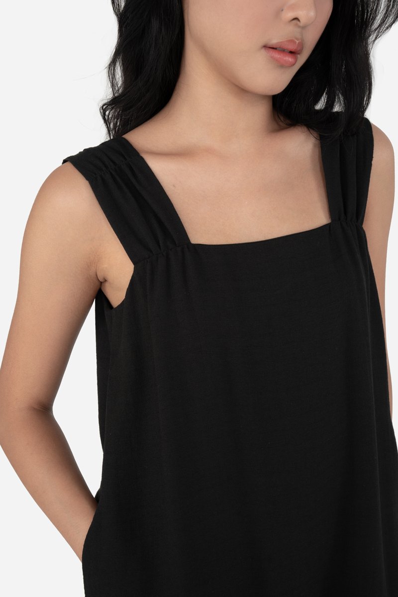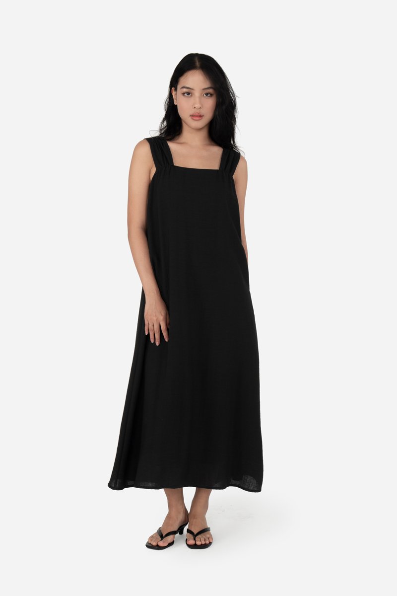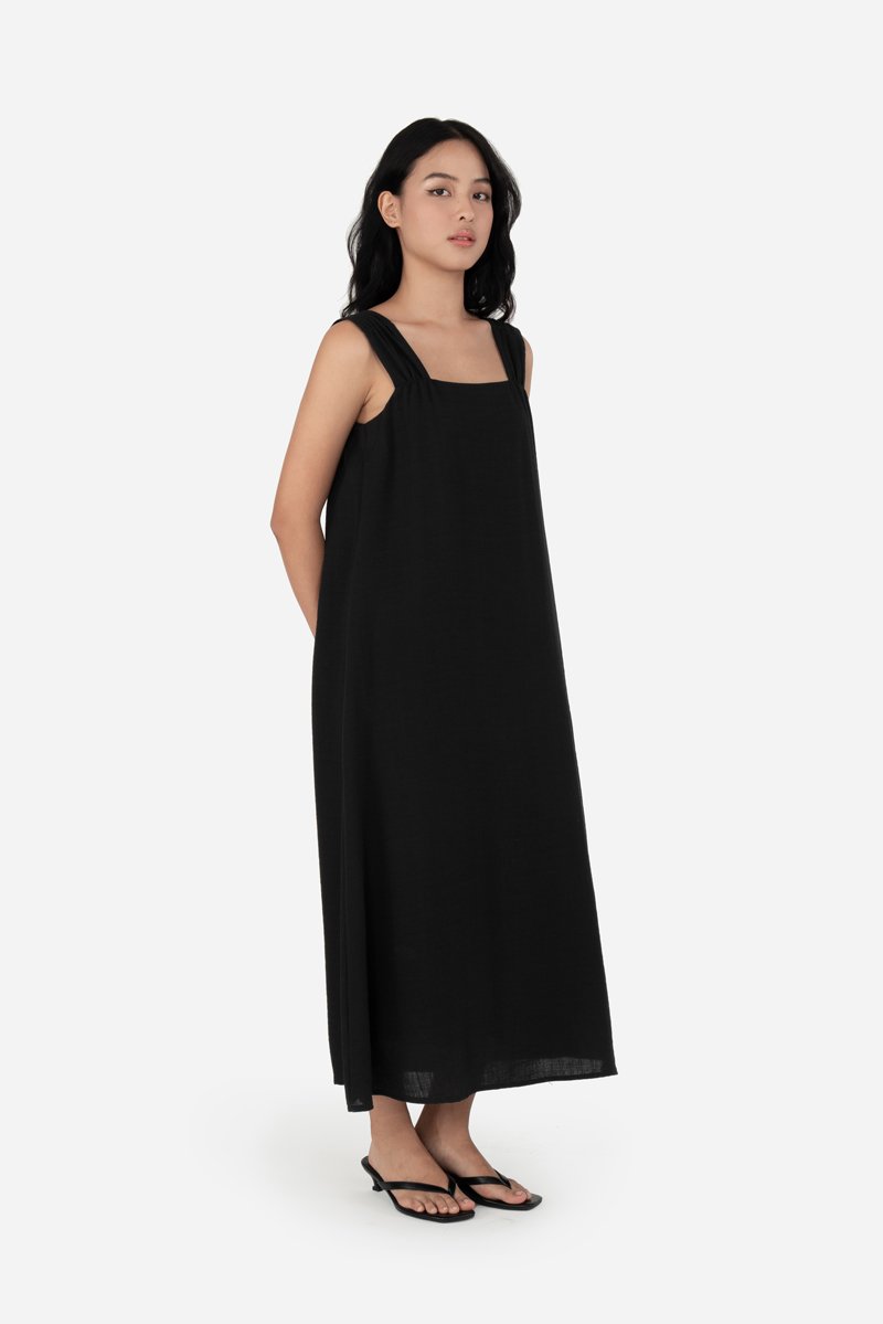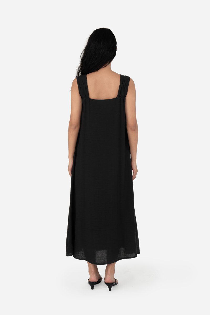 Effortless and airy, Yunisa features thick shoulder straps with a gathered-detail design, an A-line silhouette, and inseam pockets for practical ease. Made from a soft rayon blend fabric and fully lined in pure cotton, it drapes beautifully and moves with you. Style it with sandals or sneakers for casual days, or elevate the look with heels for an effortlessly dressed-up outfit.