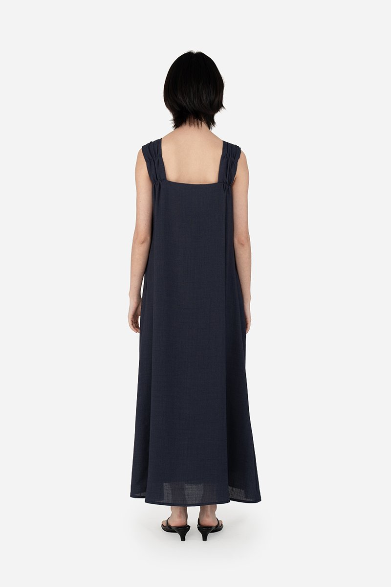 Effortless and airy, Yunisa features thick shoulder straps with a gathered-detail design, an A-line silhouette, and inseam pockets for practical ease. Made from a soft rayon blend fabric and fully lined in pure cotton, it drapes beautifully and moves with you. Style it with sandals or sneakers for casual days, or elevate the look with heels for an effortlessly dressed-up outfit.