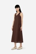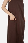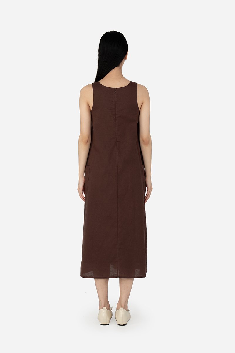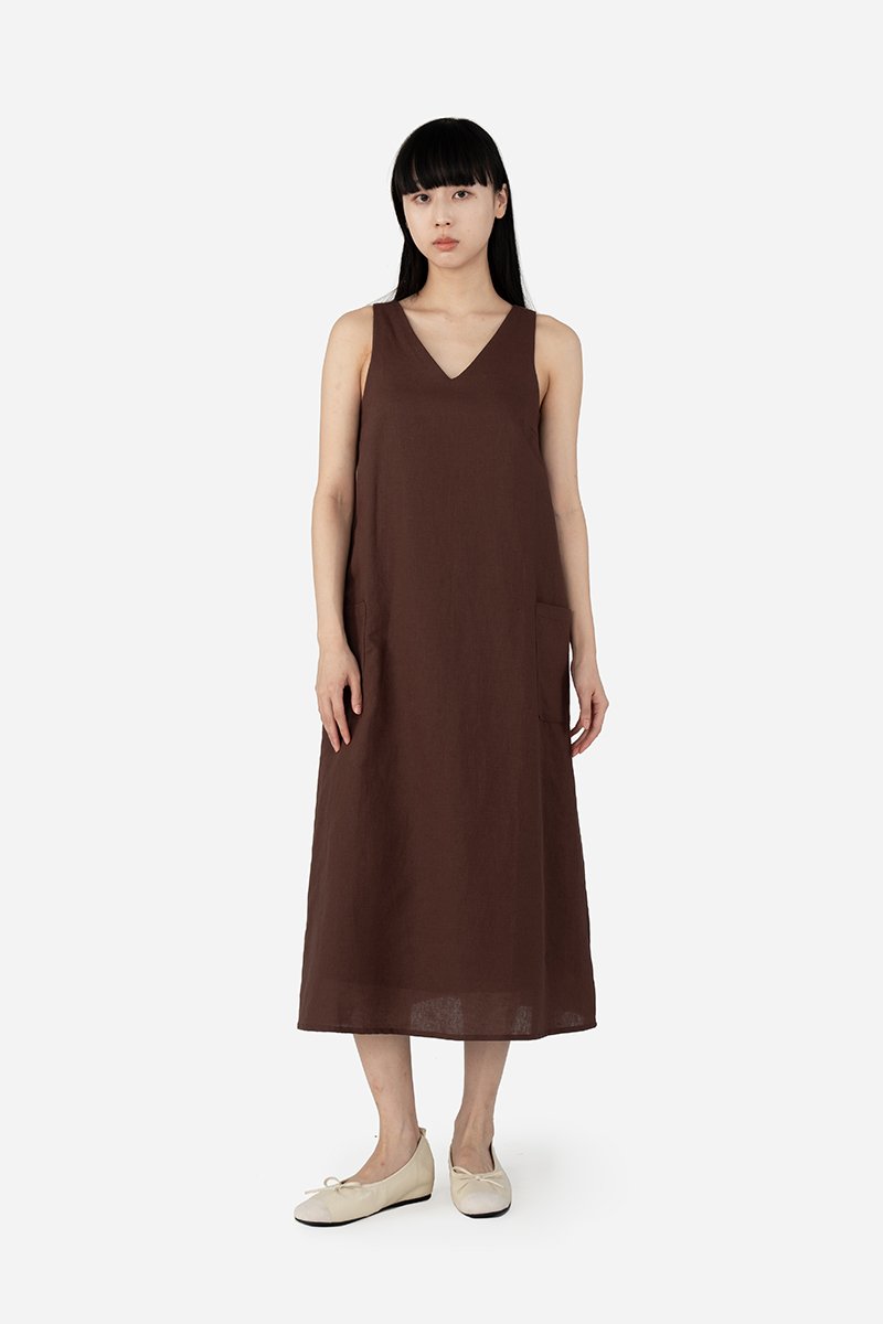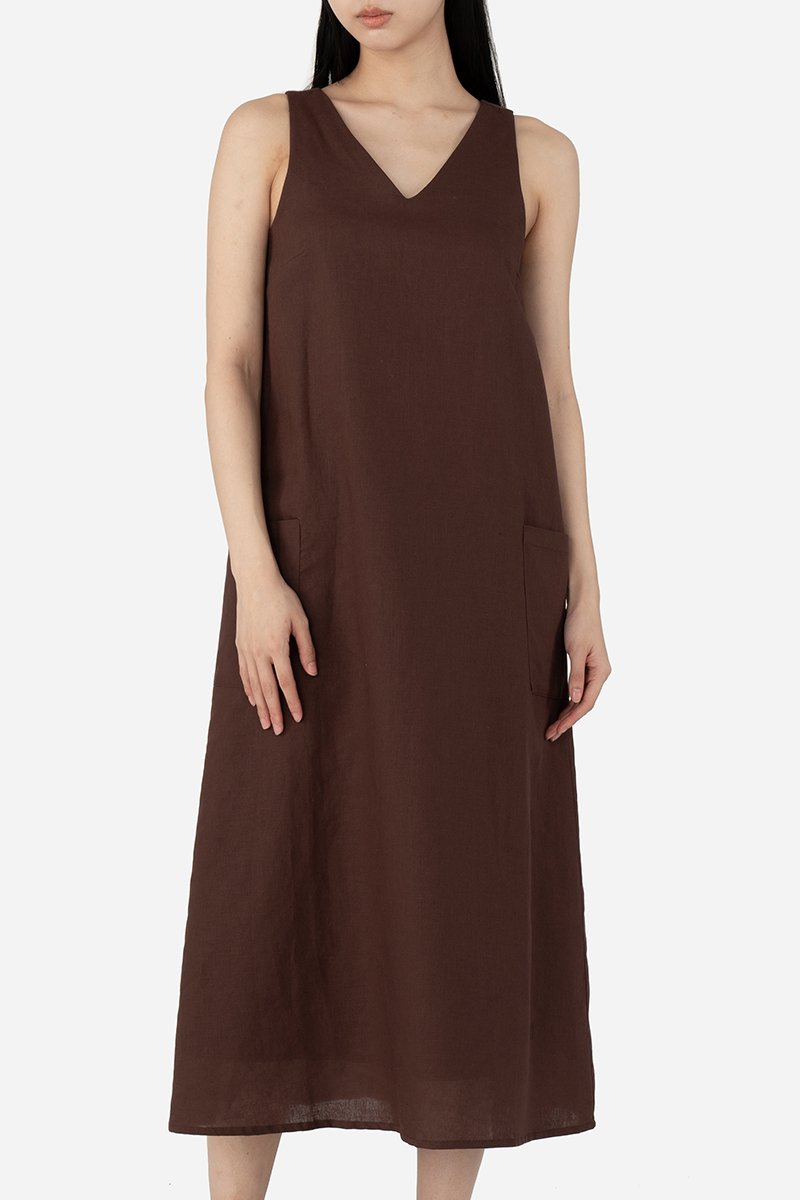 Zuka Dress is a cotton-linen piece with an A-line silhouette that makes it a fit for all casual occasions. Apart from a clean V-neckline and a concealed back zip, this minimalistic dress features side patch pockets of the same fabric, a lovely detail to have. Throw on your favourite pair of sandals for a complete look. Comes with a full, pure cotton lining.