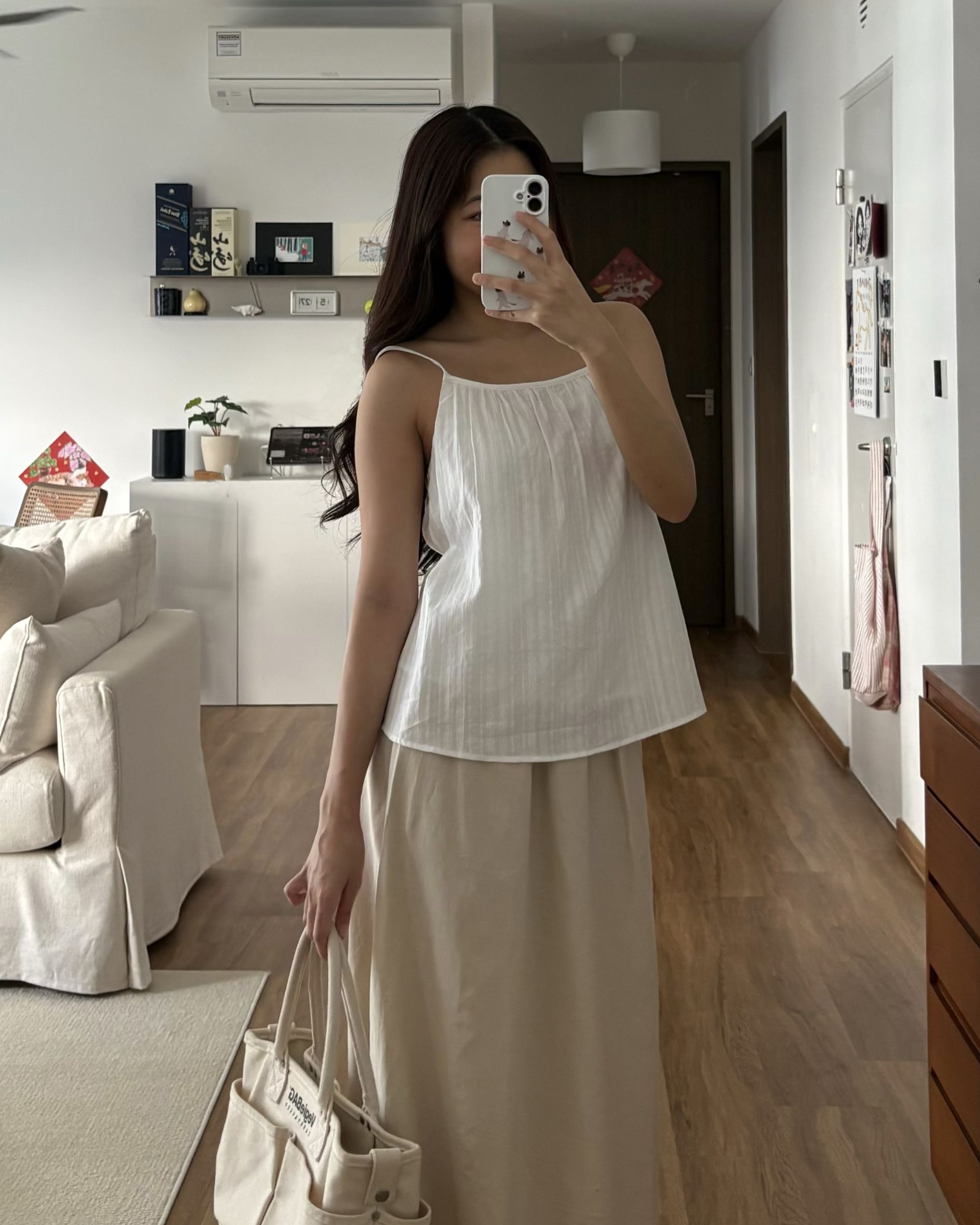 Demeria is an easy addition to your everyday rotation, made from a cotton-blend fabric and lined with pure cotton for comfortable wear. An adjustable drawstring waistband lets you customise the fit, complemented by in-seam side pockets for added ease. Its flowing A-line shape makes it simple to style for both casual days and more put-together moments.