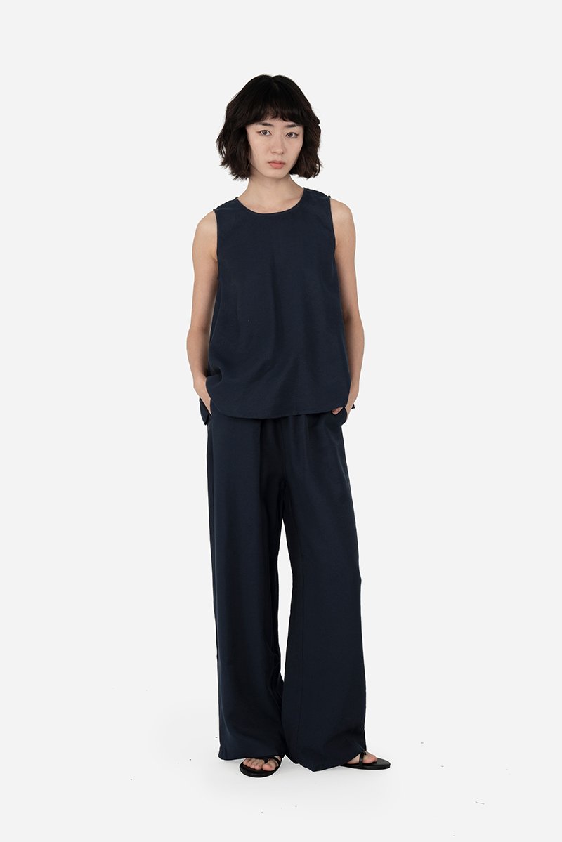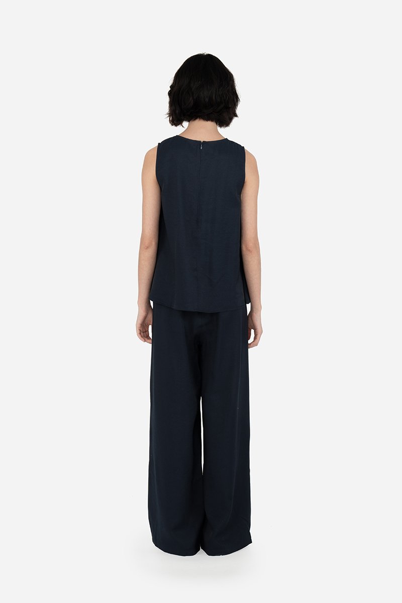 Adler, a fitting basic top for a laid back co-ord when paired with the Yoggen Pants. Comes unlined, this lightweight tank features a round neckline and a slight flare silhouette, making it a perfect staple piece to own. Cut from rayon blend, Adler is finished with a concealed zip at the back.