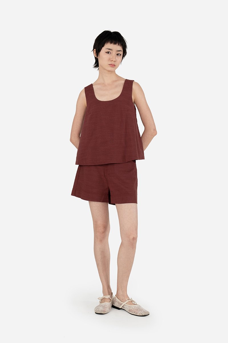 Swap your usual basics for the Albie Top, a scoop-neck, flared sleeveless essential crafted in a cotton blend fabric and fully lined with pure cotton for comfort. Designed to pair effortlessly with Dexi Shorts, it creates a pared-back, everyday co-ord you can reach for again and again. Dress it up for casual outings or relaxed occasions, Albie works just as easily with sneakers as it does with heels.