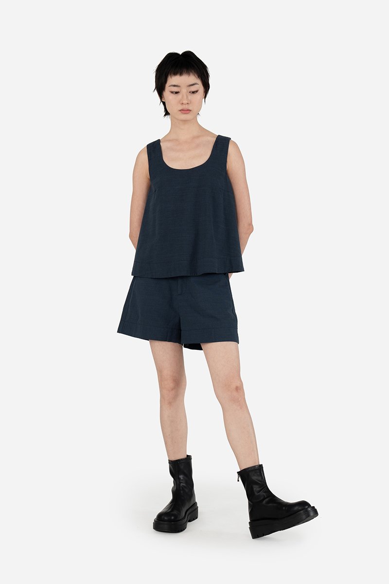 Swap your usual basics for the Albie Top, a scoop-neck, flared sleeveless essential crafted in a cotton blend fabric and fully lined with pure cotton for comfort. Designed to pair effortlessly with Dexi Shorts, it creates a pared-back, everyday co-ord you can reach for again and again. Dress it up for casual outings or relaxed occasions, Albie works just as easily with sneakers as it does with heels.