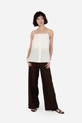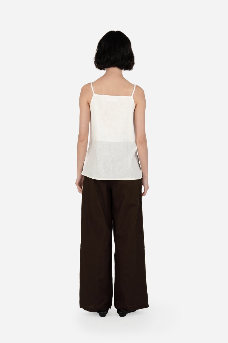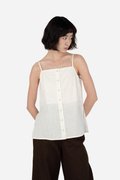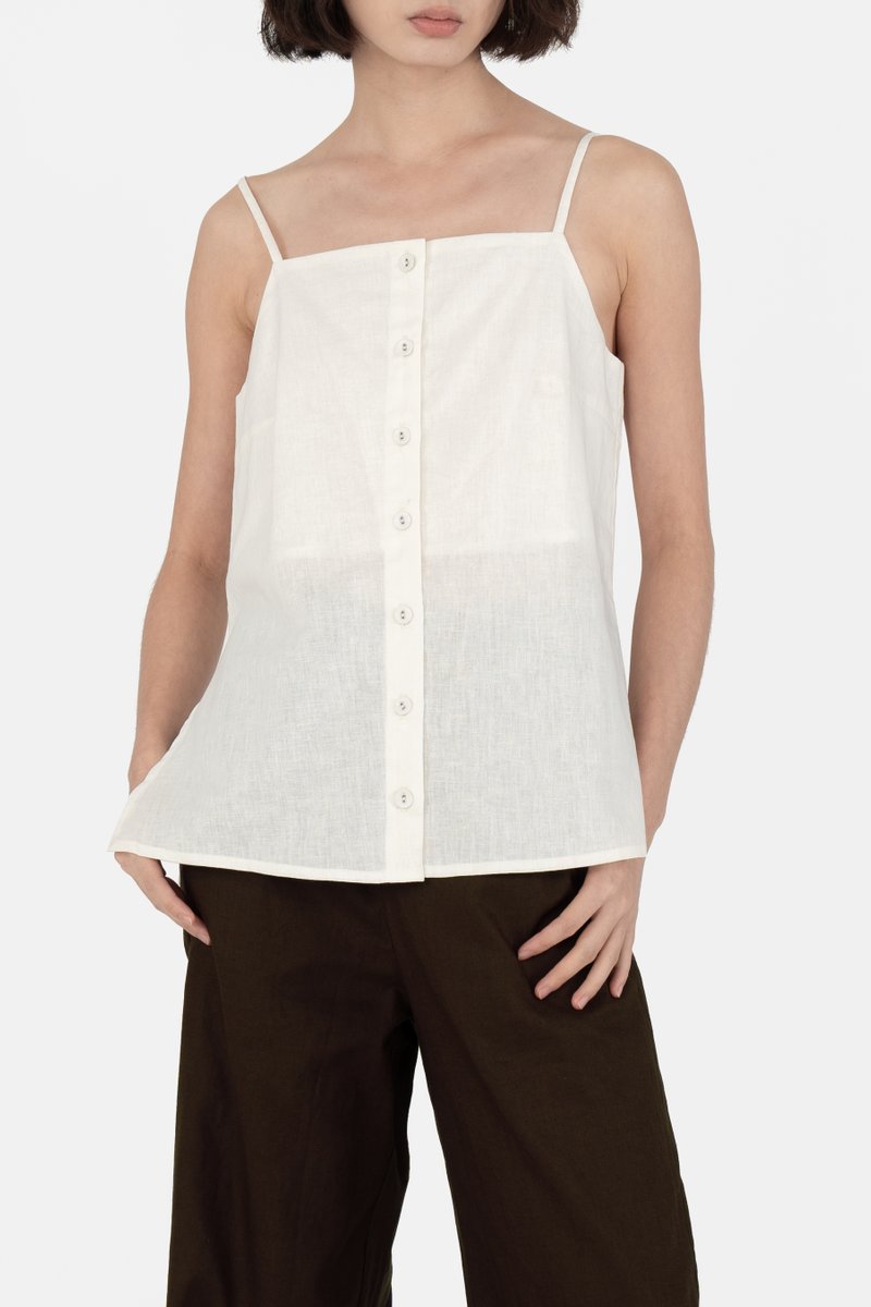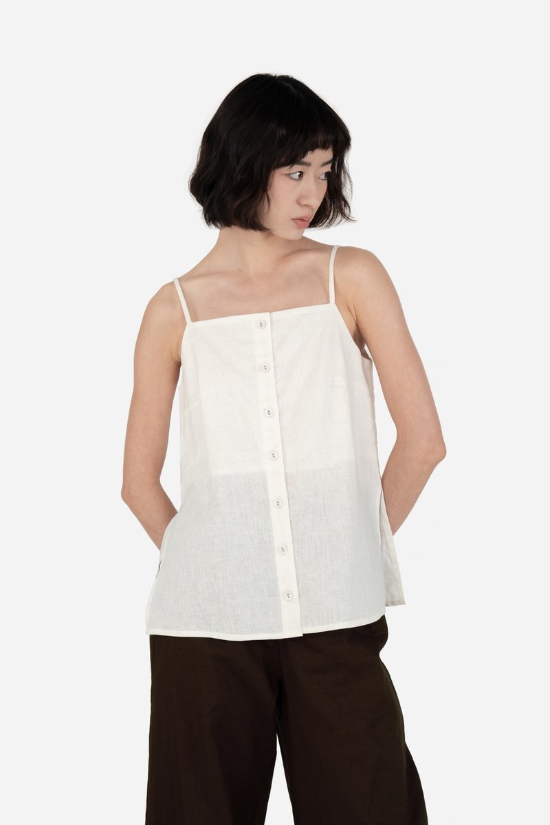 Arleen, a new addition to our cami collection. It features a straight neckline, non-adjustable straps and a functional button down. With side slits, Arleen is a long line cami minimalistic in nature, that styles fuss-free with your favourite bottoms. Sharing the same cotton-linen fabric as the Zareen Top, this cami is partially lined with a pure cotton lining for comfort.