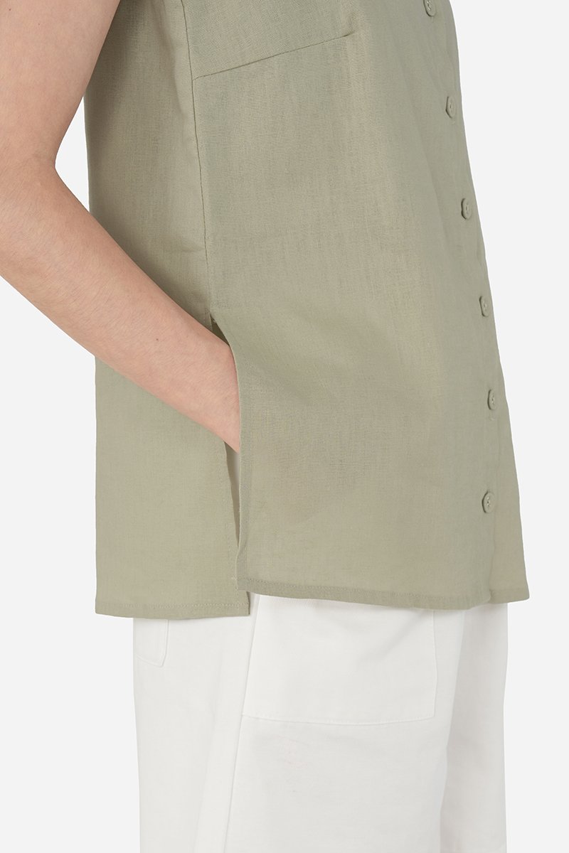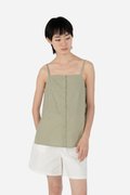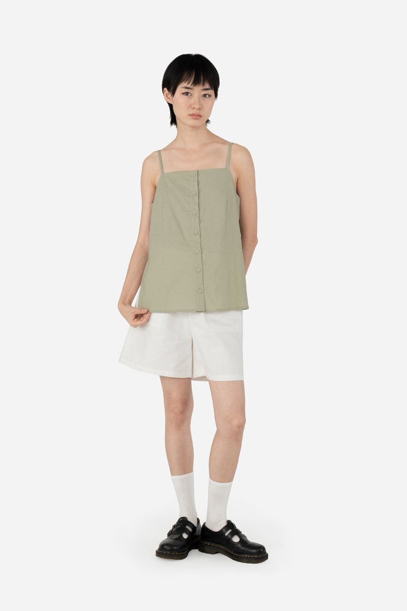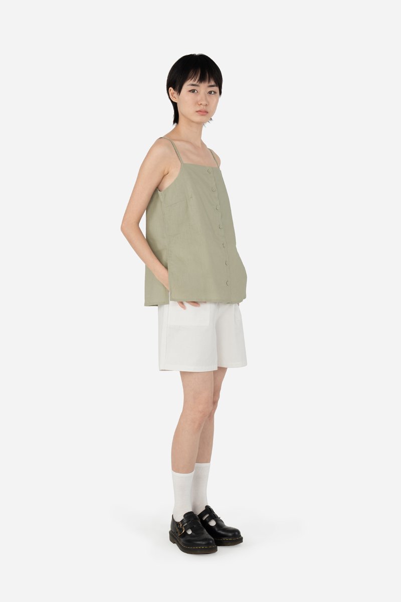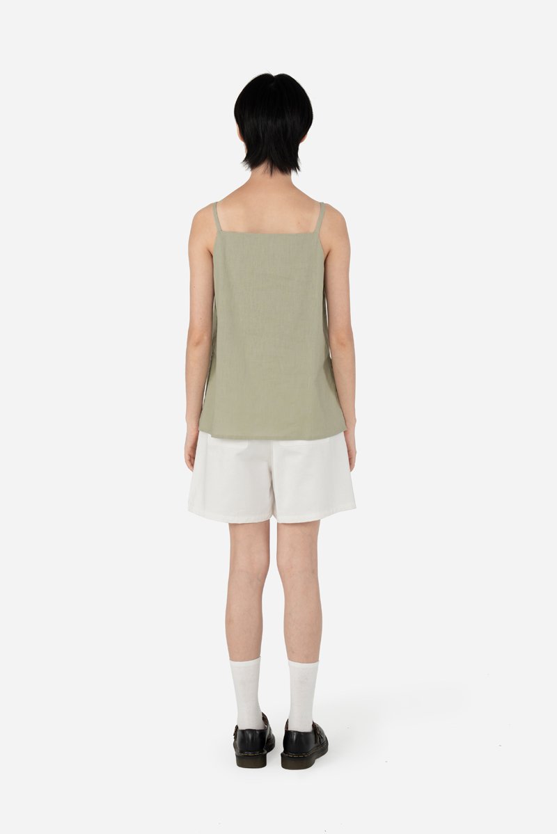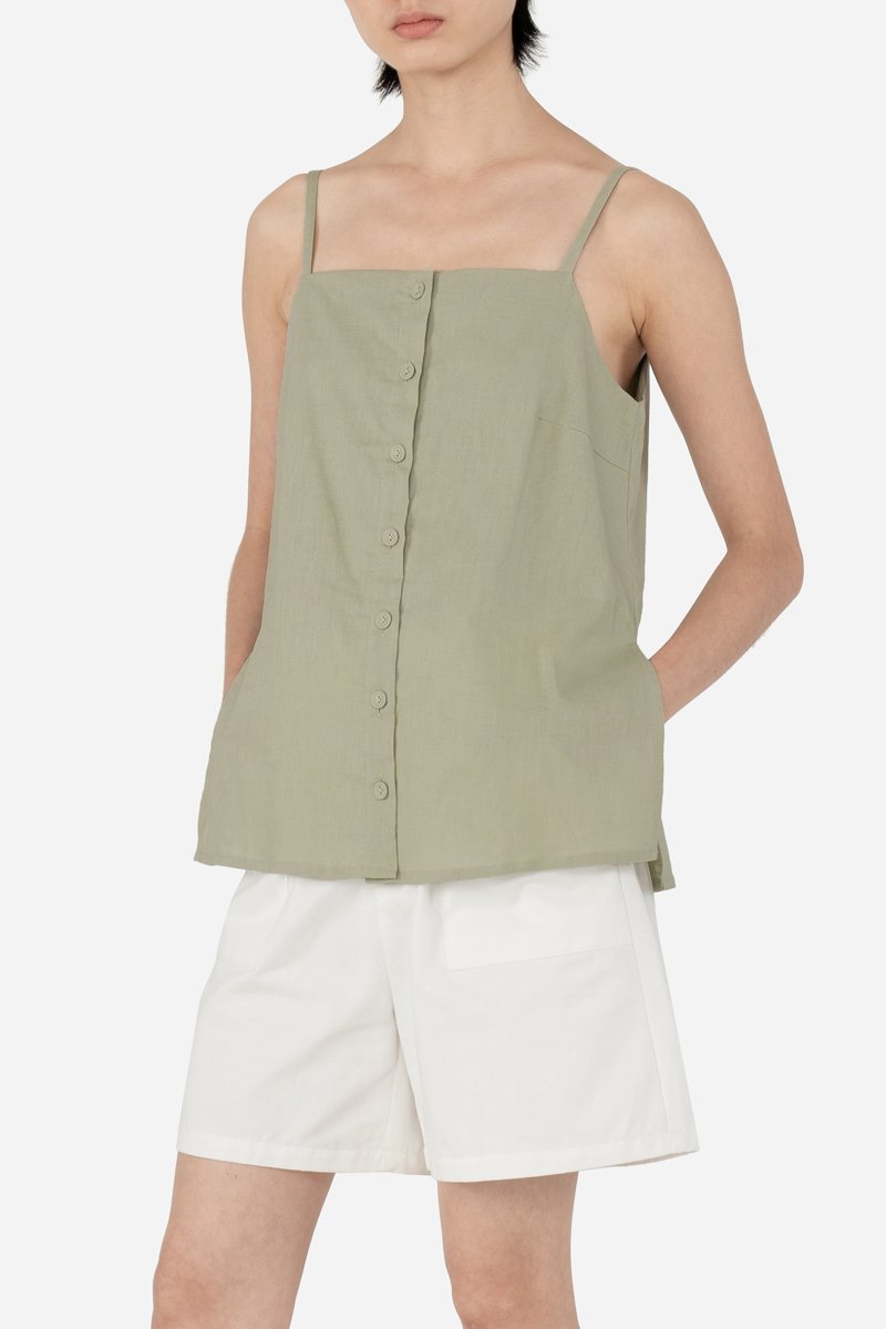 Arleen, a new addition to our cami collection. It features a straight neckline, non-adjustable straps and a functional button down. With side slits, Arleen is a long line cami minimalistic in nature, that styles fuss-free with your favourite bottoms. Sharing the same cotton-linen fabric as the Zareen Top, this cami is partially lined with a pure cotton lining for comfort.