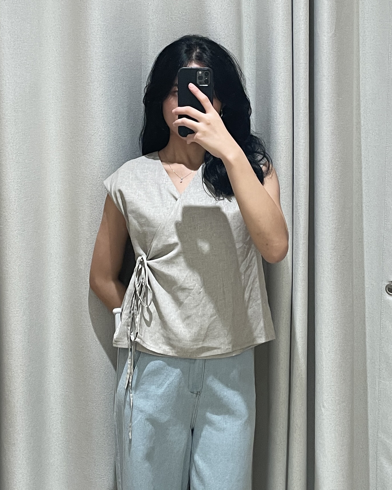 The Iguro Top brings mellow vibes to your day with its oversized fit and chic fake-wrap tie design. Crafted with a breathable cotton-linen fabric and pure cotton lining, it offers all-day comfort and effortless style. Finished with a convenient back concealed zip, this piece forms a pair with the Jabari Pants for an easy, elevated look.