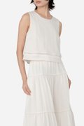 Crafted from a soft rayon blend fabric and fully lined with pure cotton, Celie offers lightweight, breathable comfort. With a delicate trim running between the fabric panels, it brings understated detail to the silhouette. Match with the Jene Pants or Imara Skirt for a coordinated co-ord, or pair with your favorite bottoms for effortless versatility.