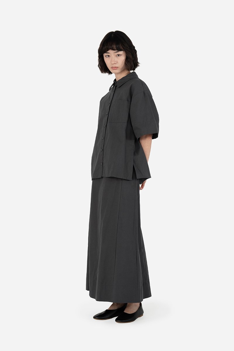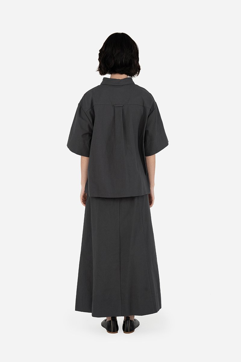 More than your standard collared shirt, Corey is a step trendier. Sharing fabric with the Lyza Skirt, this unlined 100% cotton shirt sports an oversized, long line fit with a functional button down. Elevated with side slits and a back pleat, Corey can be worn as-is or as an outerwear to deliver a touch of street.