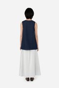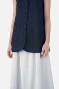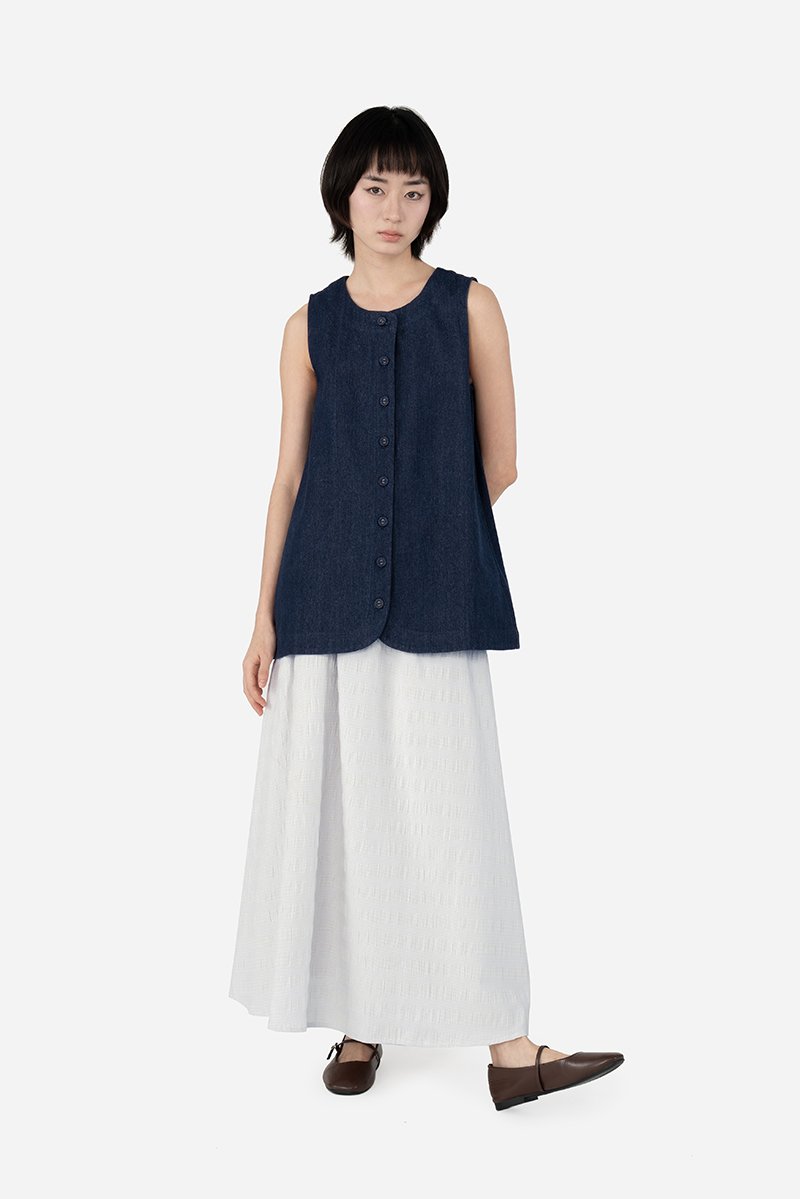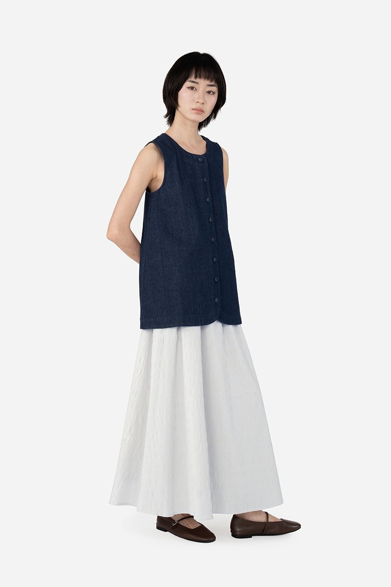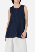 The Cotys Top is an effortless everyday denim essential, featuring a classic round neckline and button down front. Designed with a long-line silhouette and softly curved hem, it offers a flattering, relaxed fit. Crafted from a breathable cotton-blend fabric and left unlined for lightweight comfort, Cotys is perfect for easy layering or wearing on its own.