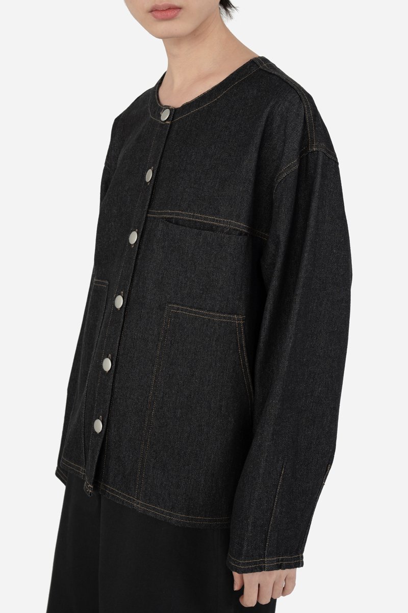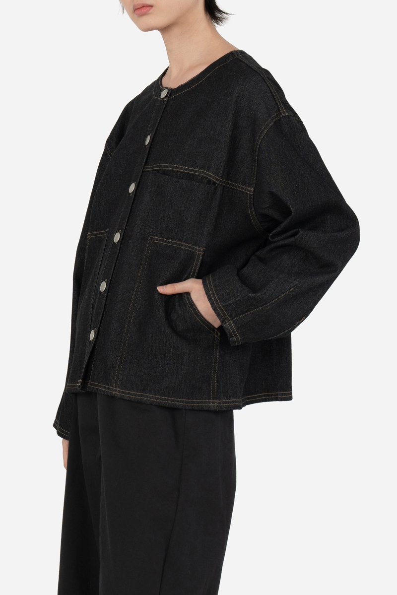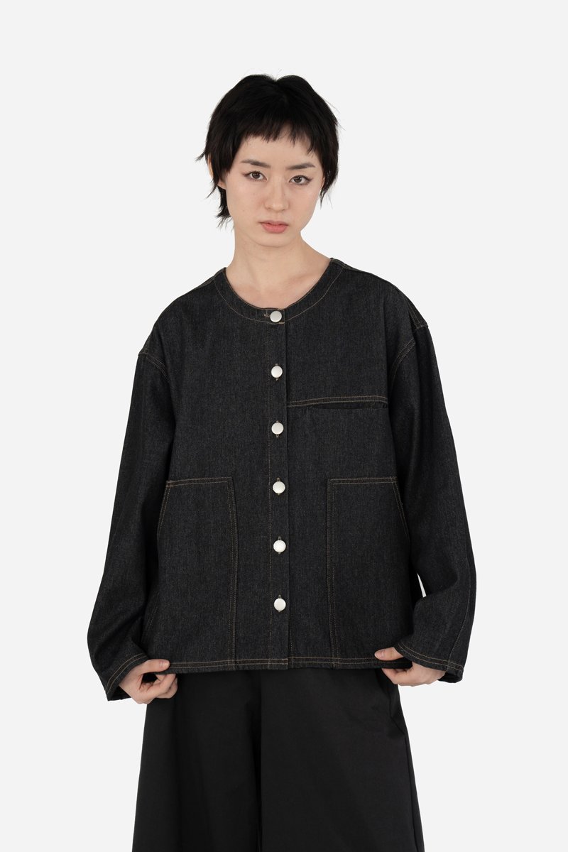 Introducing Dace, a fresh take on the classic denim jacket with a cropped silhouette that makes layering effortless. Crafted from a soft cotton blend, this piece features an in-seam chest pocket and two front patch pockets for functionality. Designed with sleeves that cinch in slightly for a subtle shape, Dace can be worn on its own as a top or layered as a light denim jacket.