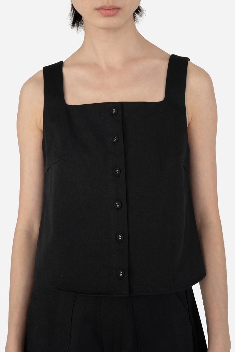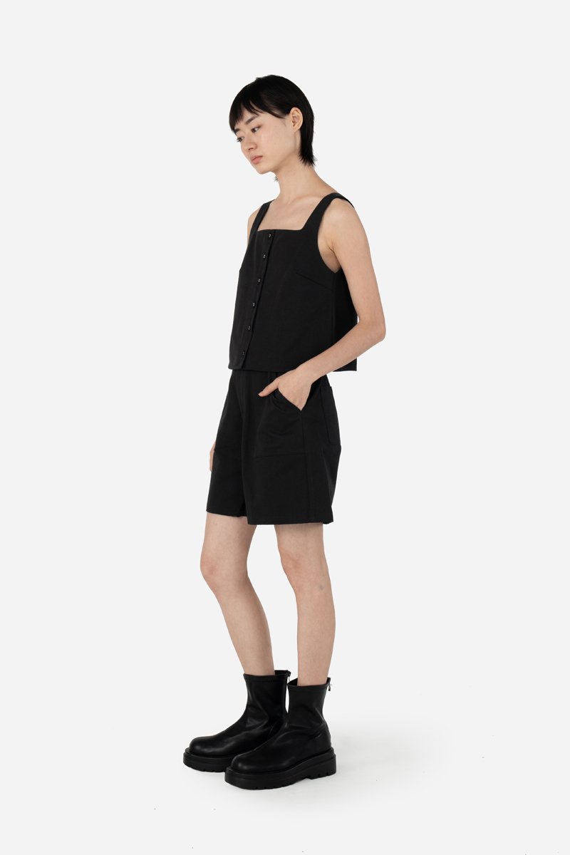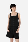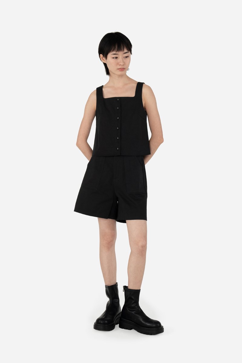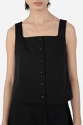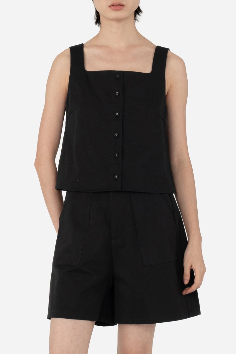 Faye brings a clean yet refined touch to your everyday wardrobe with its curved square neckline and button-down front. Designed in a cropped, straight-cut silhouette, this top offers a simple, flattering shape, while the side concealed zipper ensures easy wear. Crafted from 100% cotton and fully lined with pure cotton, it delivers breathable comfort all day long. Pair it with Jorie Shorts for a coordinated look, or style it with your favorite bottoms for an effortlessly put-together outfit.