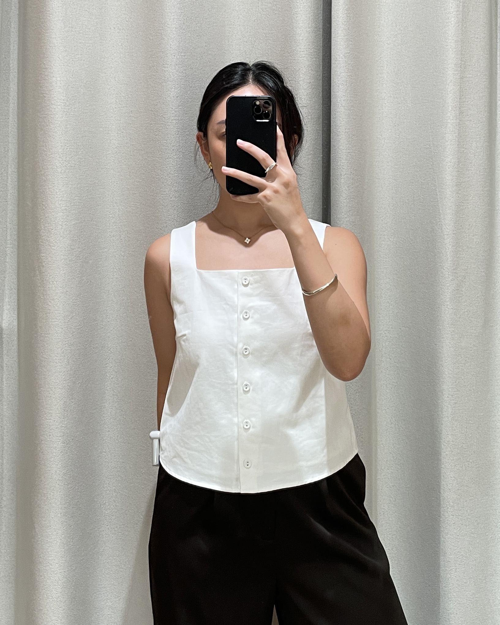 Faye brings a clean yet refined touch to your everyday wardrobe with its curved square neckline and button-down front. Designed in a cropped, straight-cut silhouette, this top offers a simple, flattering shape, while the side concealed zipper ensures easy wear. Crafted from 100% cotton and fully lined with pure cotton, it delivers breathable comfort all day long. Pair it with Jorie Shorts for a coordinated look, or style it with your favorite bottoms for an effortlessly put-together outfit.