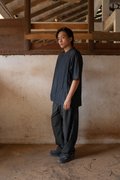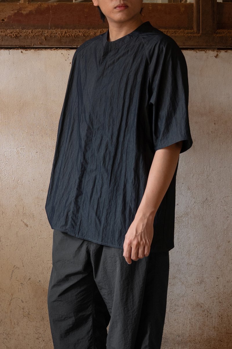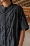 Crafted from rayon blend fabric, this full-button shirt is detailed with relaxed raglan sleeves, a band collar, hidden placket with mother-of-pearl buttons, and two in-seam pockets with mesh lining. Effortless to style, Tokara can be worn solo or alongside the Friesian Dress for a matching couple-look.