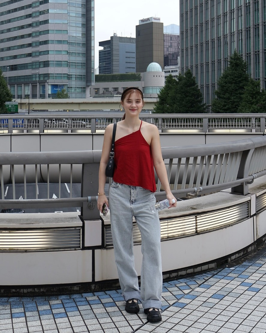Hanabi, a minimalistic show stopper. Put together in a lightweight rayon blend fabric, this top comes with a full cotton lining. It easily captures your attention with its asymmetrical, contrasting slant neckline and hem. Designed with a back elastic and adjustable strap for a better fit, Hanabi's beauty in asymmetry will be highlighted when paired with the matching Issei Skirt or any of your preferred bottoms.