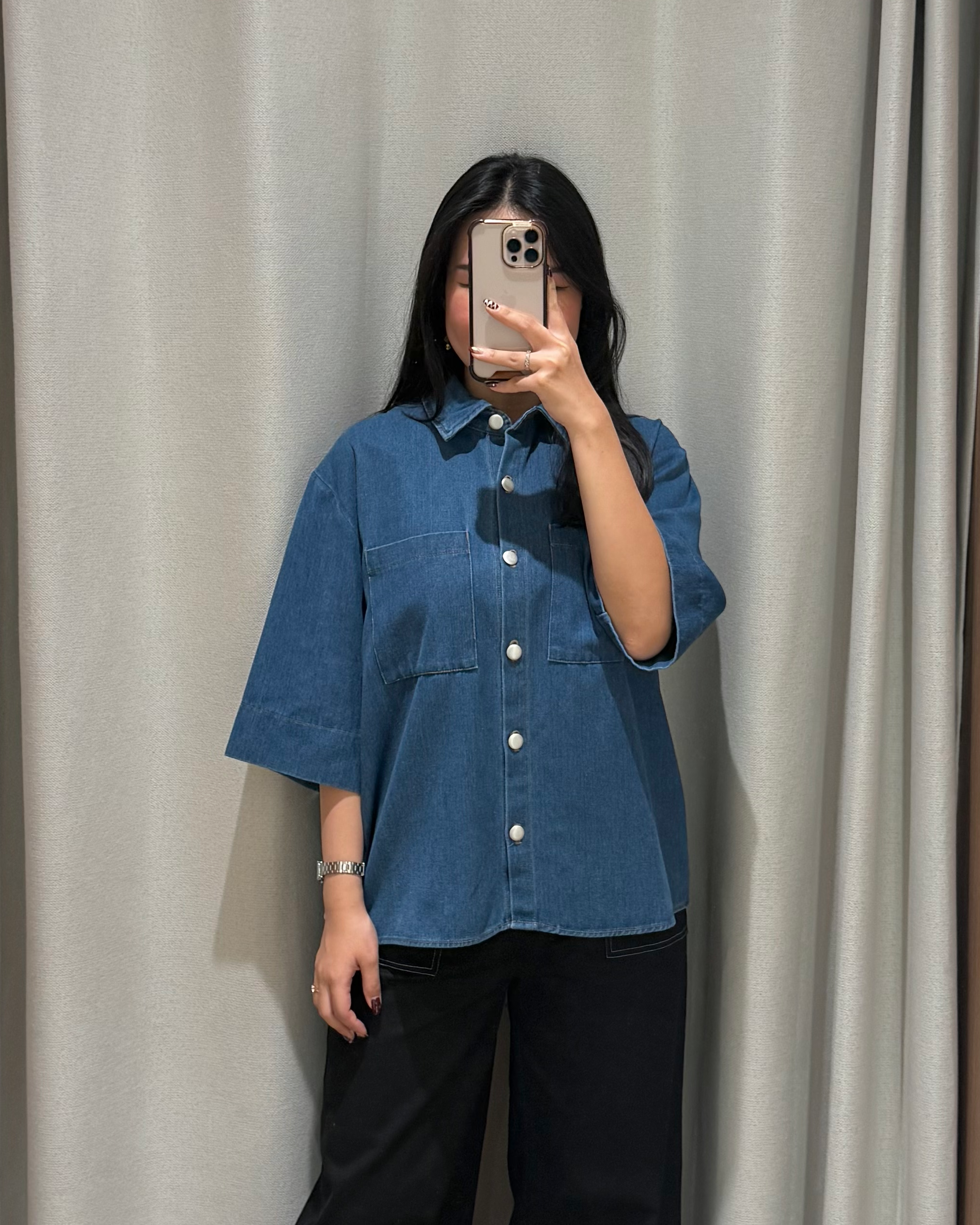 Jump on the bandwagon and trust in the Iddo Shirt to serve a stylish fit. This unlined cotton blend piece has an oversized fit and is wearable as a button-up shirt but can effortlessly elevate any outfit when thrown on as an outerwear! Iddo's key features are its drop shoulders, elbow-length sleeves, patch pockets and metal button button down that deliver a chic, boyfriend-shirt look when put together. For a co-ord set, pair it with the Ares Skirt or Jaxon Jeans.