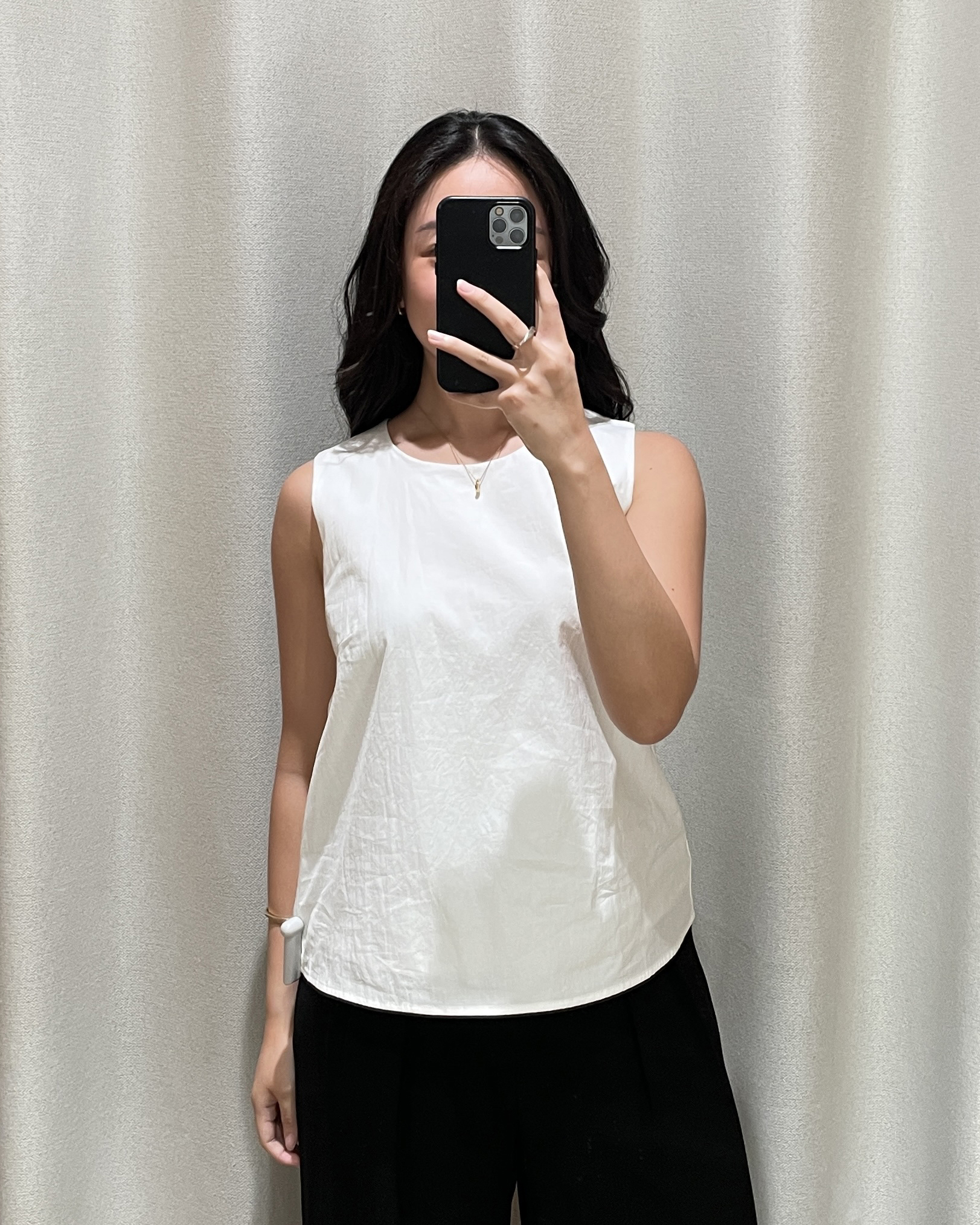 Tired of the plethora of tops with front details, here's Josette. Designed to look like a basic round-necked tank from the front, this top showcases a short functional button down and gathered seam that runs across the back. Serves great outfits when paired with any pants or skirts, Josette is made out of the same 100% cotton fabric as the Perrina Shirt and comes with a full, pure cotton lining for comfort.