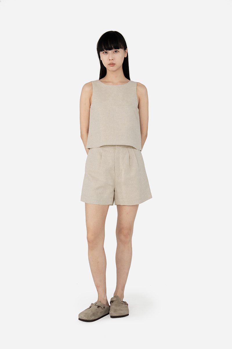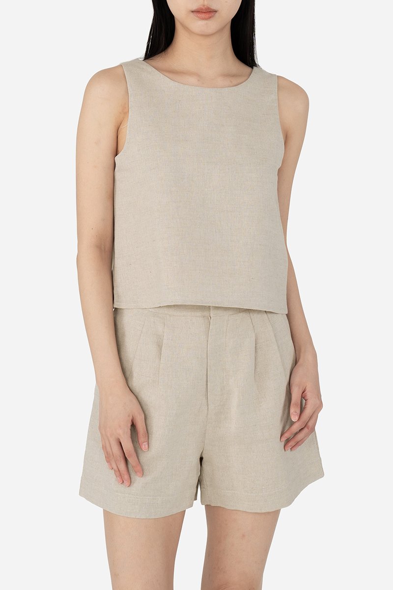 A great basic cotton-linen piece for your wardrobe, the Jovi Top is fully lined with pure cotton for breathable, all-day comfort. Its 2-way design lets you switch between a round or square neckline, offering two looks in one and effortless versatility. As a co-ord, Jovi pairs perfectly with Fable Shorts or pants like Gallo, Stryner, and Watson, all crafted from the same fabric, for easy, polished matching.