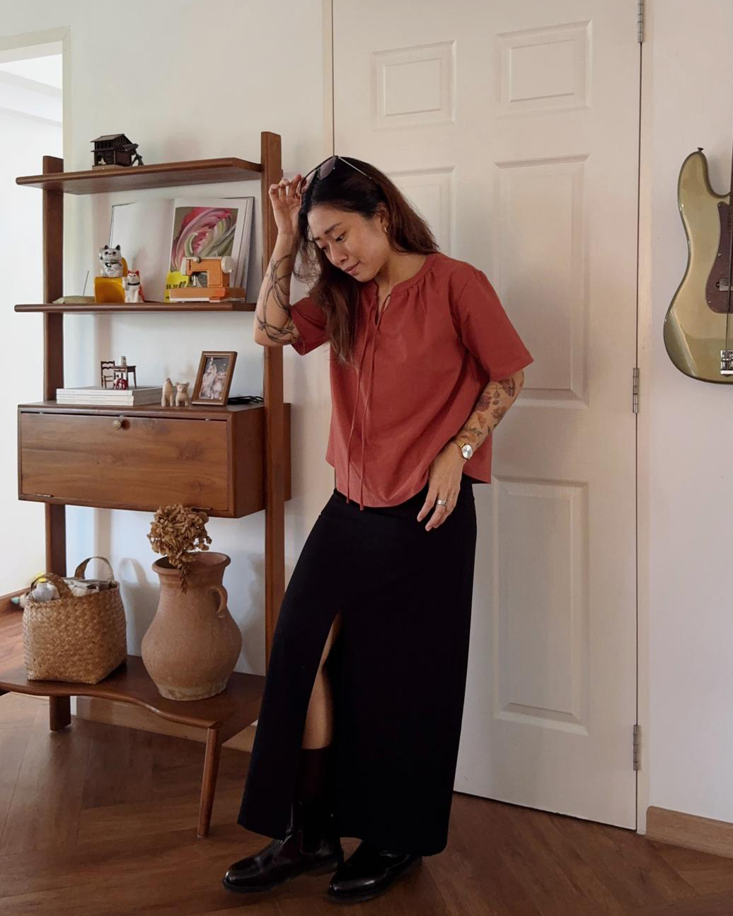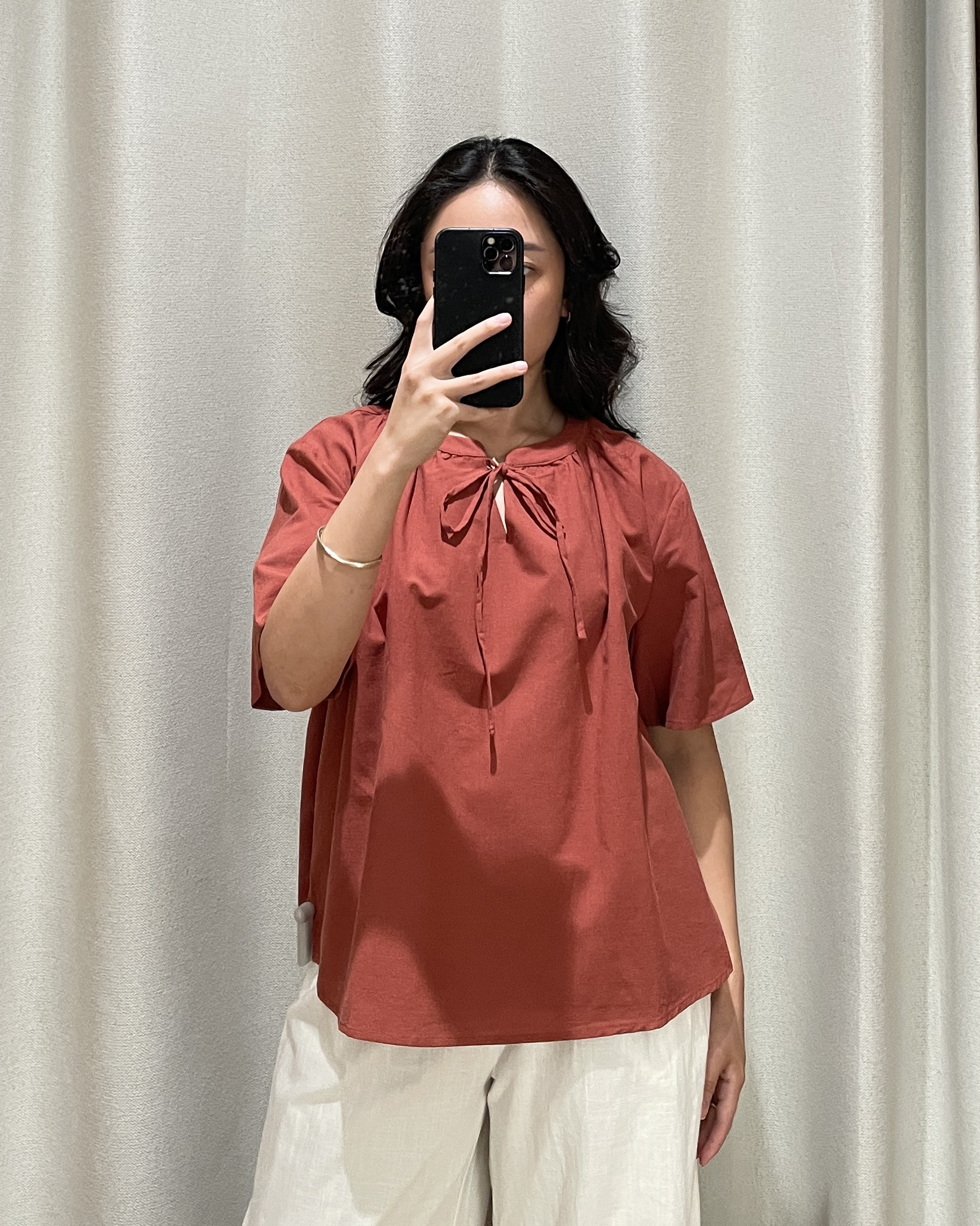 With the right amount of femininity and modesty, Dinley Blouse was an effortless choice for many. Sharing the same breathable cotton blend fabric and pure cotton lining as Dinley, expect Kenai to deliver the same level of comfort in a regular length instead. In a loose-fitted silhouette, this sleeved top features a round collar with a V cut-out, embellished with a frontal tie detail. Introduce and experiment with new proportions in styling with Kenai.