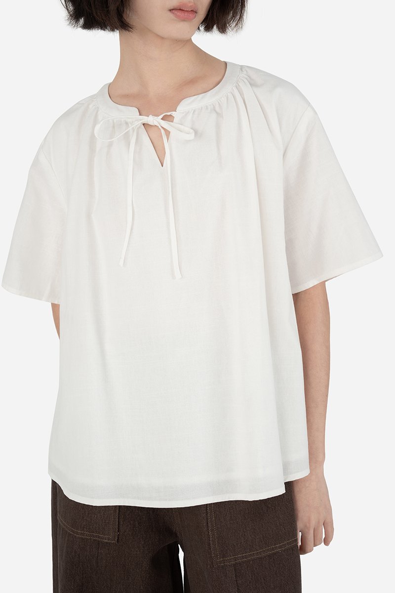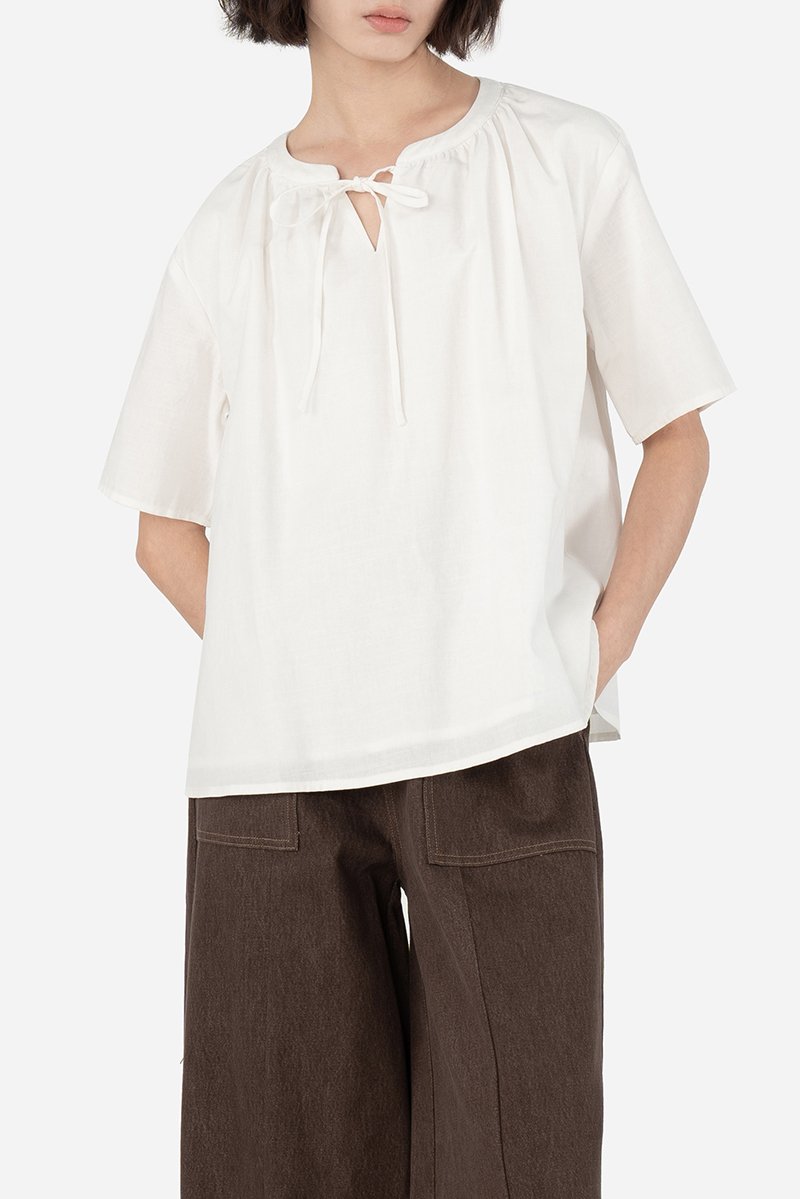 With the right amount of femininity and modesty, Dinley Blouse was an effortless choice for many. Sharing the same breathable cotton blend fabric and pure cotton lining as Dinley, expect Kenai to deliver the same level of comfort in a regular length instead. In a loose-fitted silhouette, this sleeved top features a round collar with a V cut-out, embellished with a frontal tie detail. Introduce and experiment with new proportions in styling with Kenai.