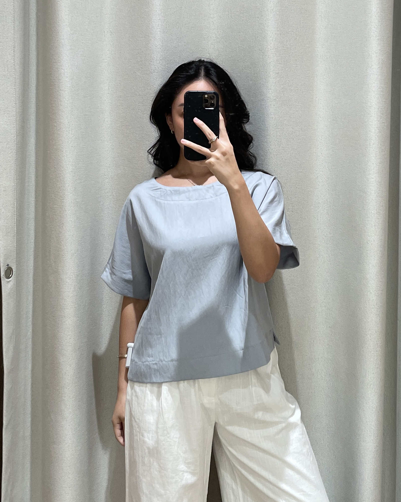 Refresh your wardrobe with Koru, a versatile piece designed in a soft rayon blend fabric. Its boat neckline and batwing sleeves lend an easy, breezy feel, while the thick hem and mini slit keep the silhouette polished. Worn with the Luca Skirt, it forms a clean, pared-back co-ord perfect for effortless styling.