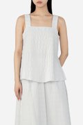 The Lavon Top offers a thoughtful take on textured dressing with its clean straight neckline and thick shoulder straps. Falling into a relaxed A-line silhouette, it is finished with side slits for comfortable, effortless wear. Constructed from a cotton blend fabric and partially lined with pure cotton, Lavon completes a polished textured co-ord look when paired with the Alyna Skirt.