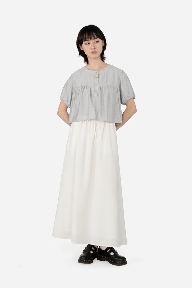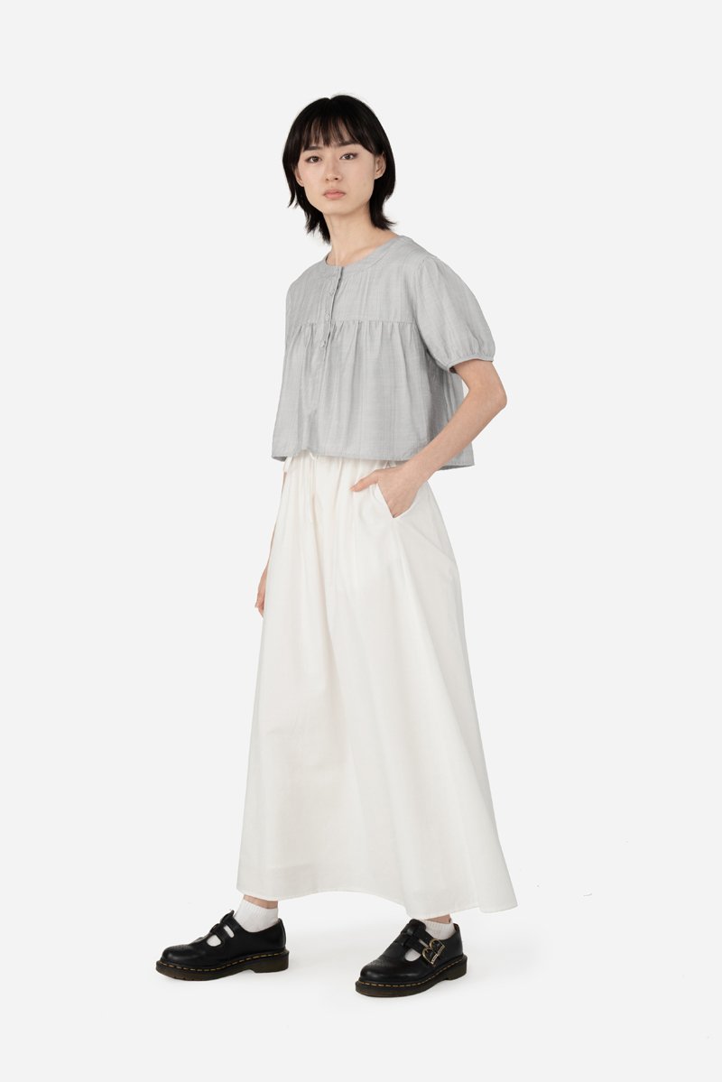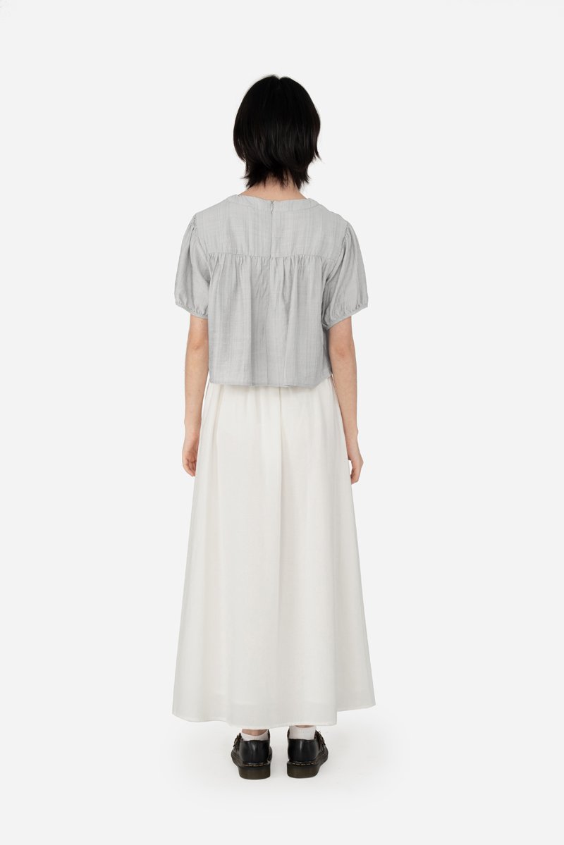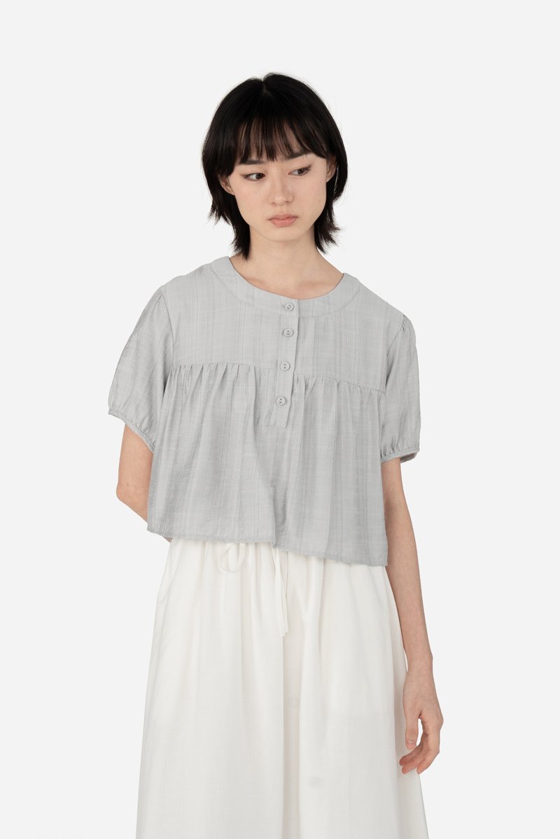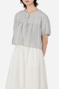 Perdita, our next take on a round neckline and puffed sleeves top. A soft, patterned, rayon blend fabric is used to construct this cropped piece and is cotton lined for comfort against skin. It also features a half-placket button down and a gathered bust seam for added detailing. Fitted with a concealed zip at the back, Perdita is available in multiple colours and easy to style, it'll be your next favoured to-go top!