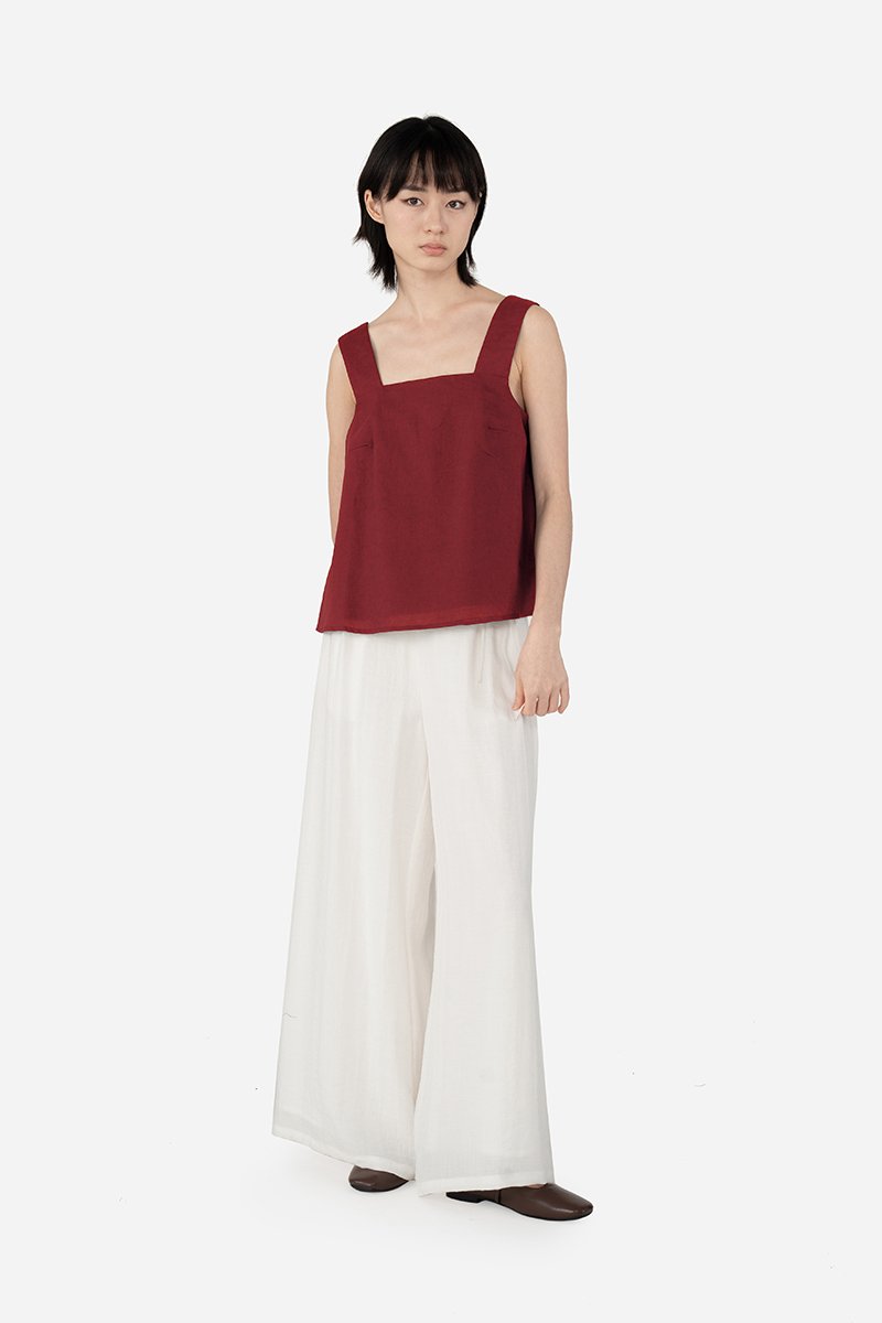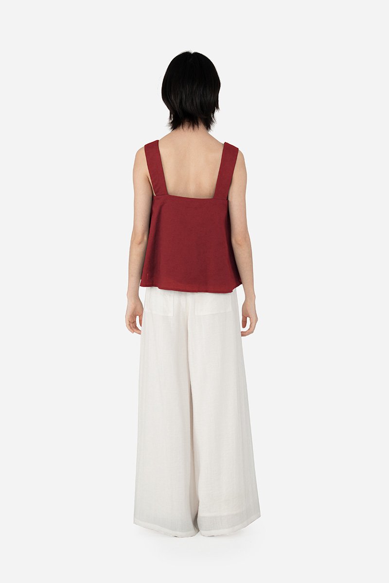 Another one of the essentials that forms a clean co-ord set with the Watson Pants. This cotton-linen top has a pure cotton lining, straight neckline, thick shoulder straps with slight curvature and an A-line silhouette that works for all. Quileen is finished with a side concealed zip and presents itself as a casual yet polished piece to go about your day in.